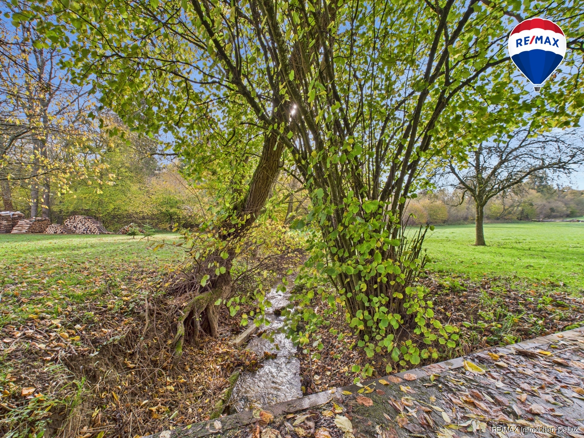Ein besonderes Highlight ist die Lage: Hinter dem Grundstück fließt ein Bach, es schließen sich weite Felder und Waldflächen an – keine Nachverdichtung, keine Neubauten in Sicht. Nur Ruhe, Natur und Weitblick. Diese Umgebung ist nicht nur einzigartig schön, sondern auch dauerhaft gesichert.