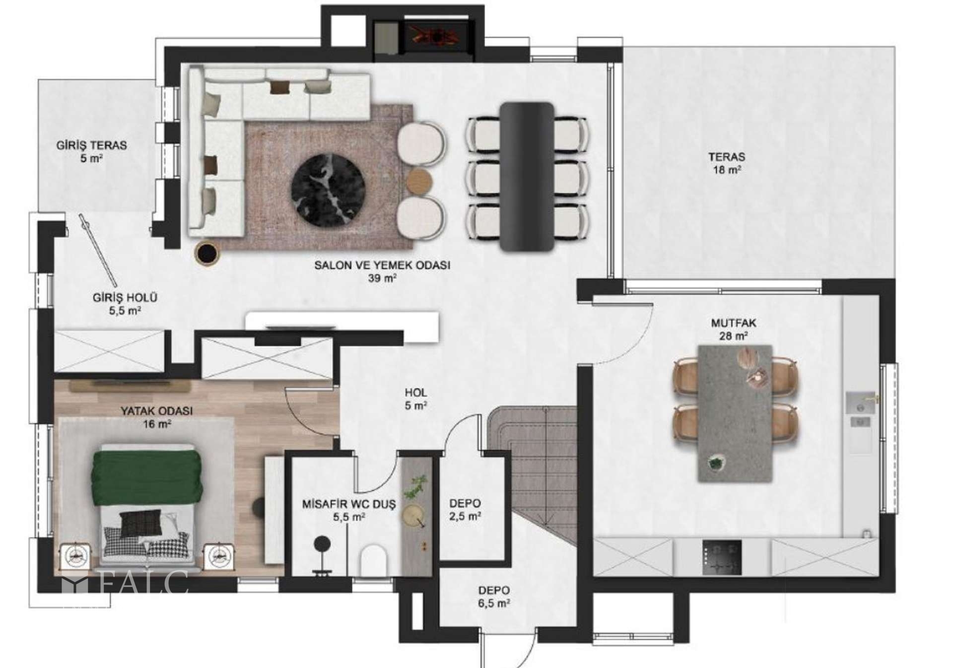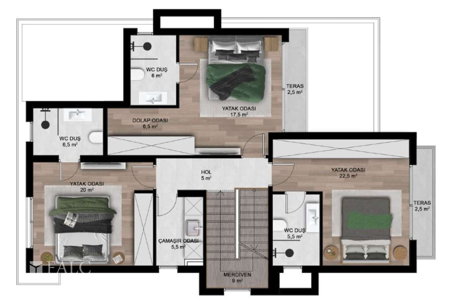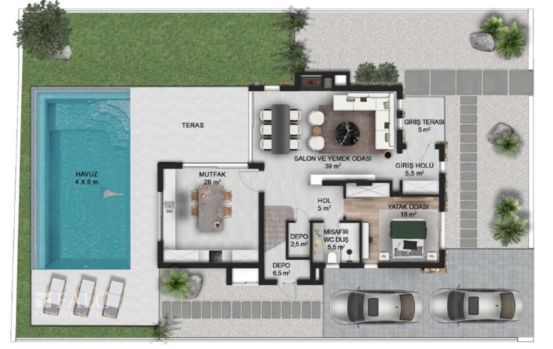 - Einbauküche - Kamin - Klimatisierung - Terrasse - Balkon - Swimmingpool - Waschküche - Abstellraum - Gartenlagerbereich - WC+Dusche im Erdgeschoss - Zimmer im Erdgeschoss als Schlaf- oder Arbeitszimmer nutzbar - Eigener privater Gartenbereich - Parkplätze auf dem eigenen Grundstück - Eigenes Bad in allen Schlafzimmern - Gemeinschaftlicher Swimmingpool (31 x 8 m) - Aktivitätsbereich für den Pool - Schachspielplatz - Basketballplatz - Wanderweg - Kinderspielplatz - Klimaanlage und Wärmepumpe kompatible Heizkörperinfrastruktur - Gusseiserner Kamin mit Glasabdeckung - Internet-, Satelliten-, Telefon- und Kamera-Infrastruktur - Sicheres Login-System für den Site-Zugang - Verwendung erstklassiger Elektromaterialien - LED-Spotbeleuchtung und Umgebungsbeleuchtung - Bodenbelag aus Keramik der 1. Klasse - Erstklassiger Laminatboden in den Schlafzimmern - Tauchpumpe - Solarkollektorsystem - Verwendung von Ecotherm-Steinen für Außenwände - Wassertank (6 Tonnen Einbau + 1 Tonne auf dem Dach)