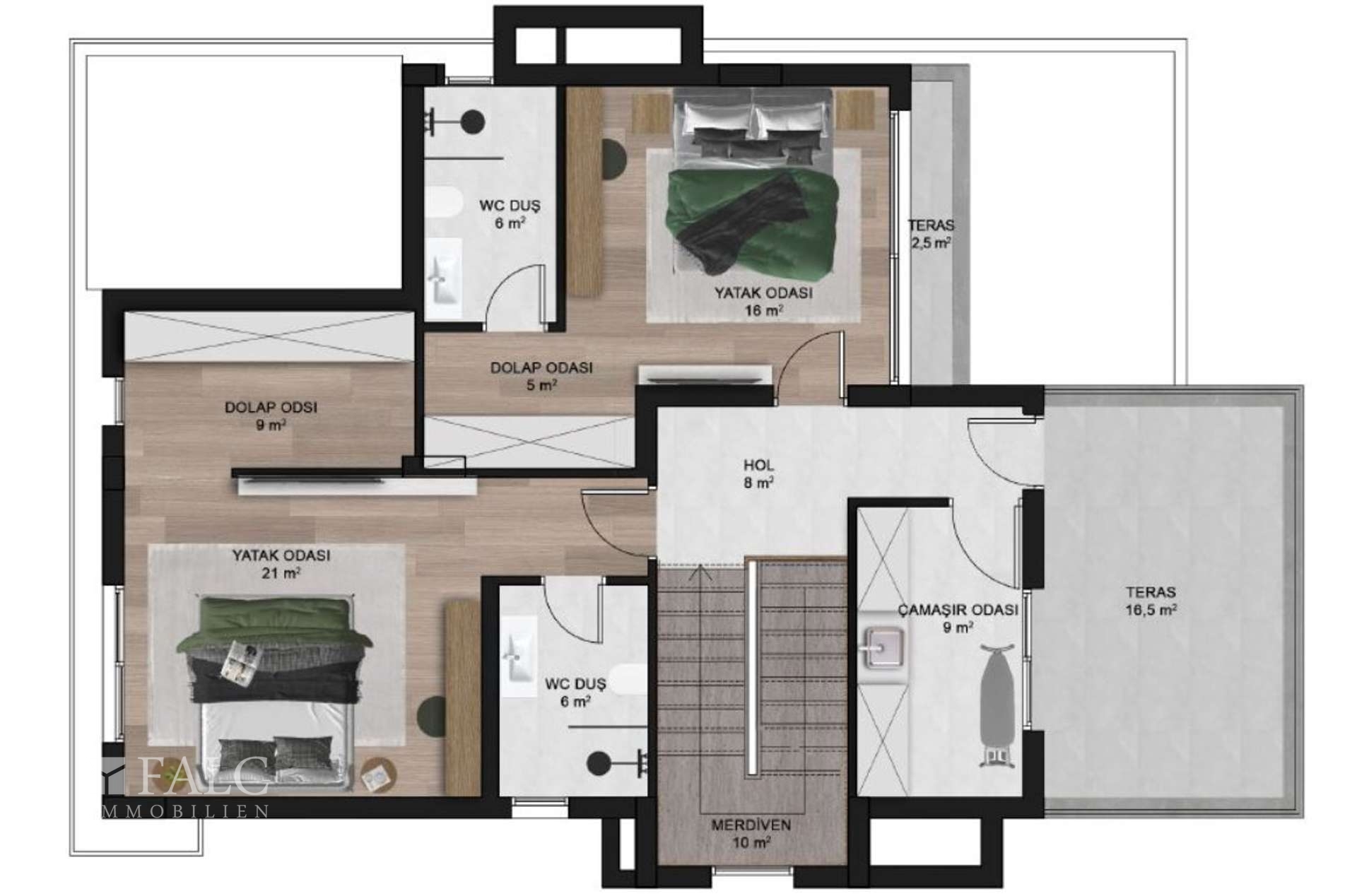 Unser Projekt umfasst insgesamt 23 Villen an einem einzigartigen Ort mit Jahrhunderte alten Olivenbäumen, die tief in der Region Edremit in Kyrenia verwurzelt sind. Optional können 13 der Villen mit einem eigenen Pool ausgestattet werden.