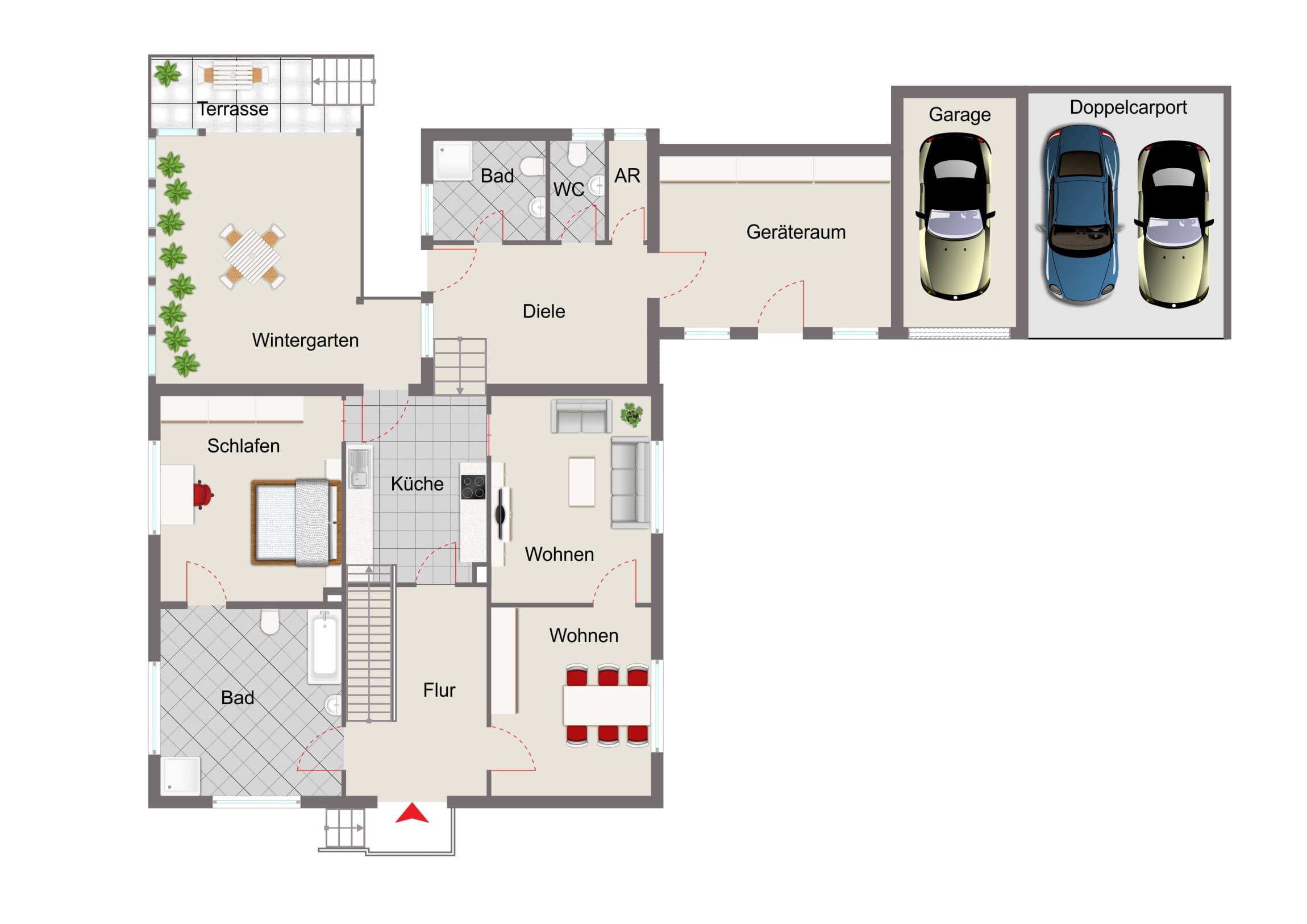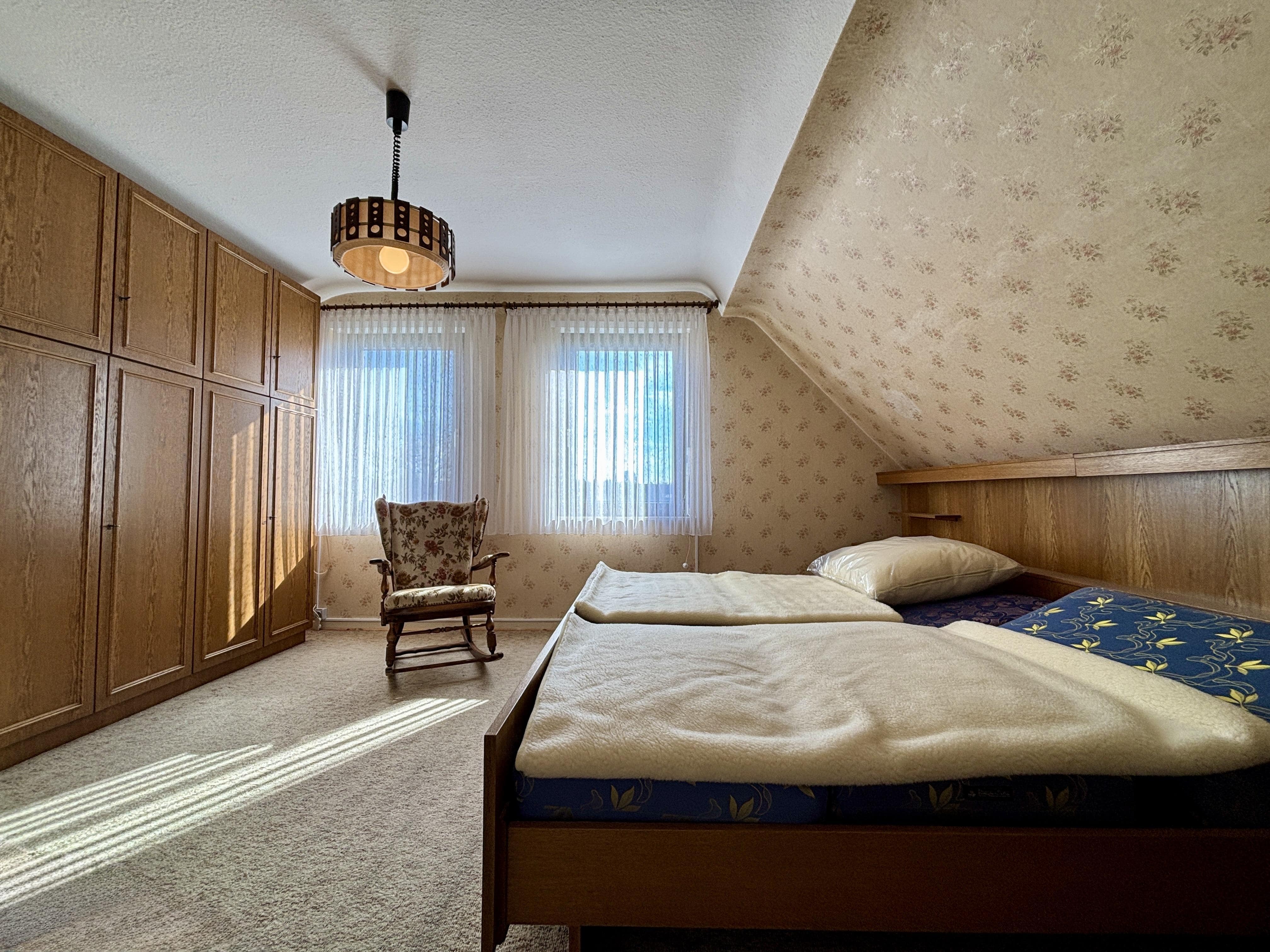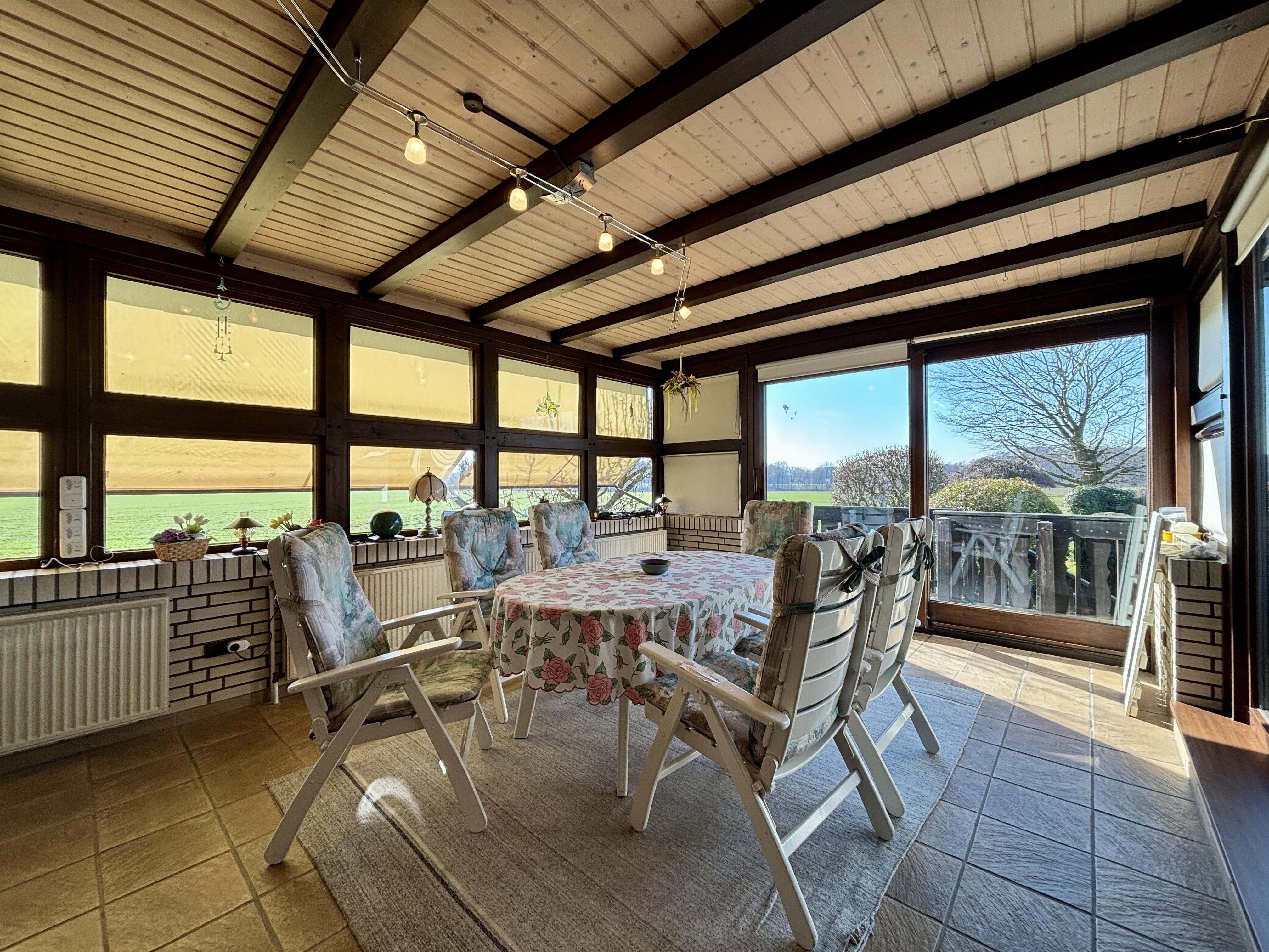 Im Dachgeschoss befinden sich drei lichtdurchflutete Schlafzimmer, ein weiteres helles Schlafzimmer liegt im Erdgeschoss. Der Wohn /Essbereich mit angrenzender Küche lässt sich zu einem modernen Wohnzentrum umgestalten, das geräumige Bad bietet reichlich Komfort. Ein herrlicher Wintergarten, ein Hauswirtschaftsraum und ehemalige Stallungen erweitern die Nutzungsmöglichkeiten – von Hobby über Werkstatt bis hin zu zusätzlichem Wohnraum. Zwei Carports und eine Garage sichern ausreichend Stellplätze.