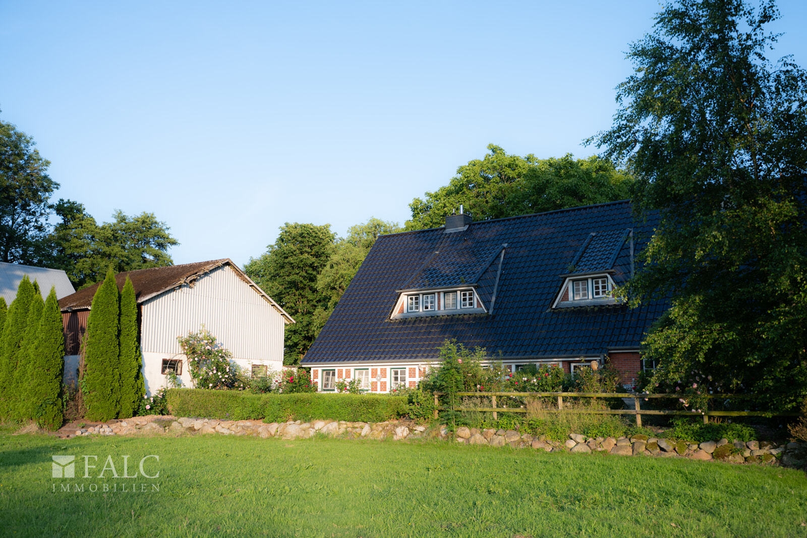 Inmitten einer grandiosen Naturlandschaft mit schreienden Möwen, Marschen und Sand, Birken- und Nadelwäldern, Strömen und Seen… Hier in der Gemeinde Drochtersen, nahe der Elbe, liegt der Niedersachsen Hof mit Haupthaus, einem Pferdestall, Reitplatz, Nebengebäuden, 18.000 qm Land, Weiden mit Streuobstwiesen, einem zauberhaften Rosengarten, mehreren Sitzplätzen im Garten, Tee-Pavillon und Gartenhaus.
