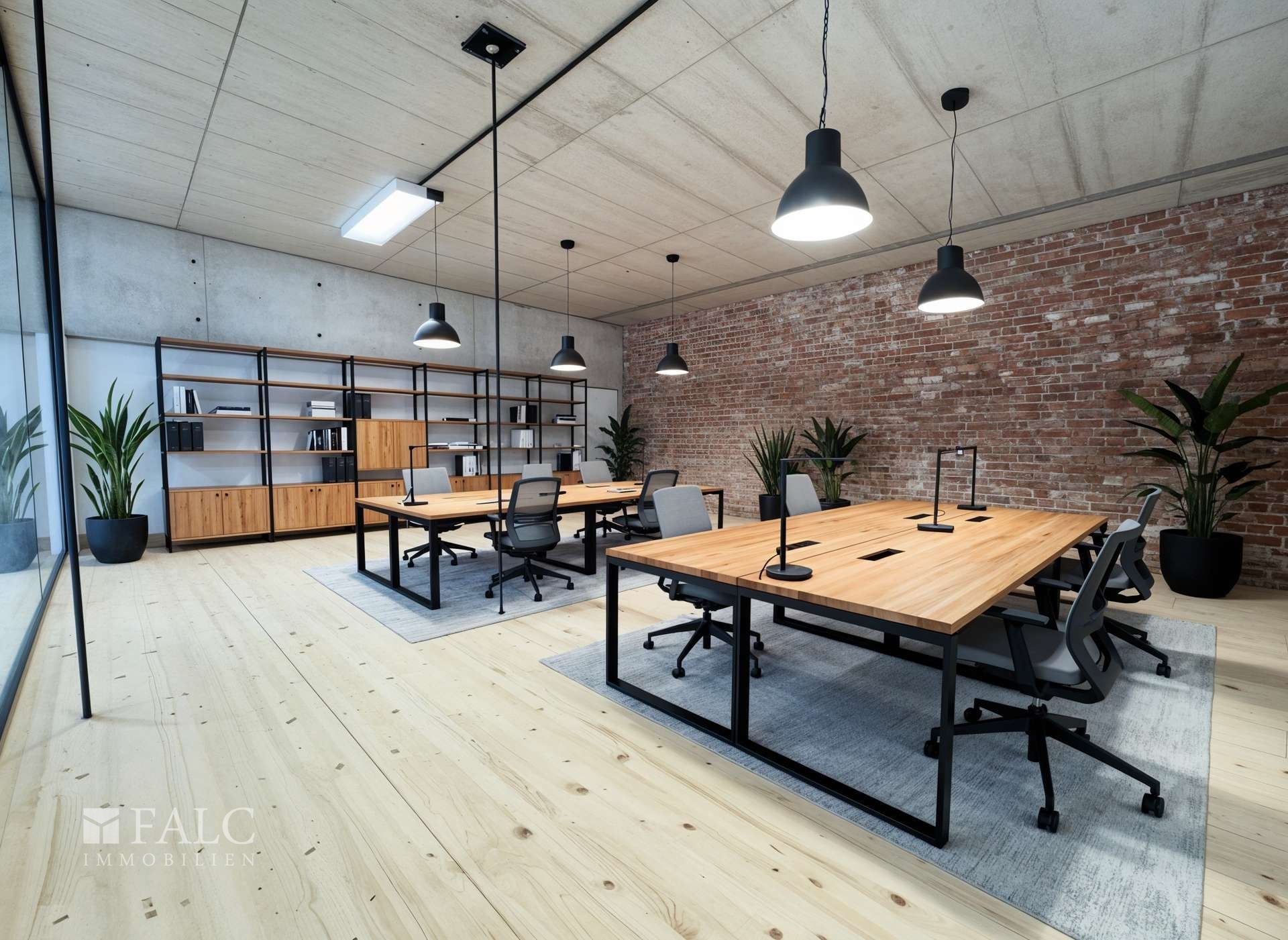 Der gesamte Innenbereich ist im modernen, loftartigen Industrie-Stil gehalten und überzeugt durch hohe Decken, klare Strukturen und eine helle, freundliche Atmosphäre. Die Kombination aus historischem Charakter und zeitgemäßer Ausstattung schafft ein besonderes Ambiente, das Funktionalität und Design perfekt miteinander verbindet.