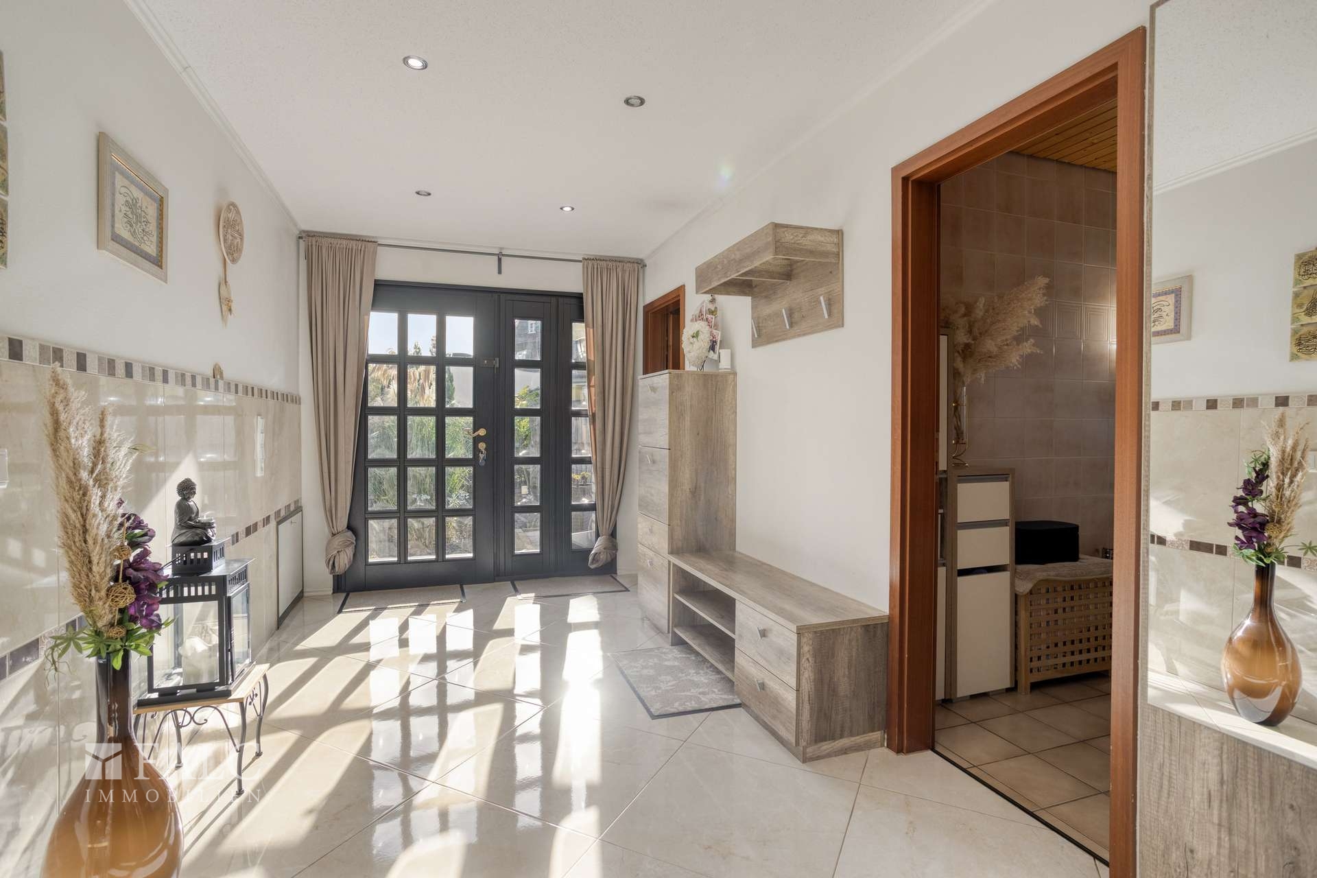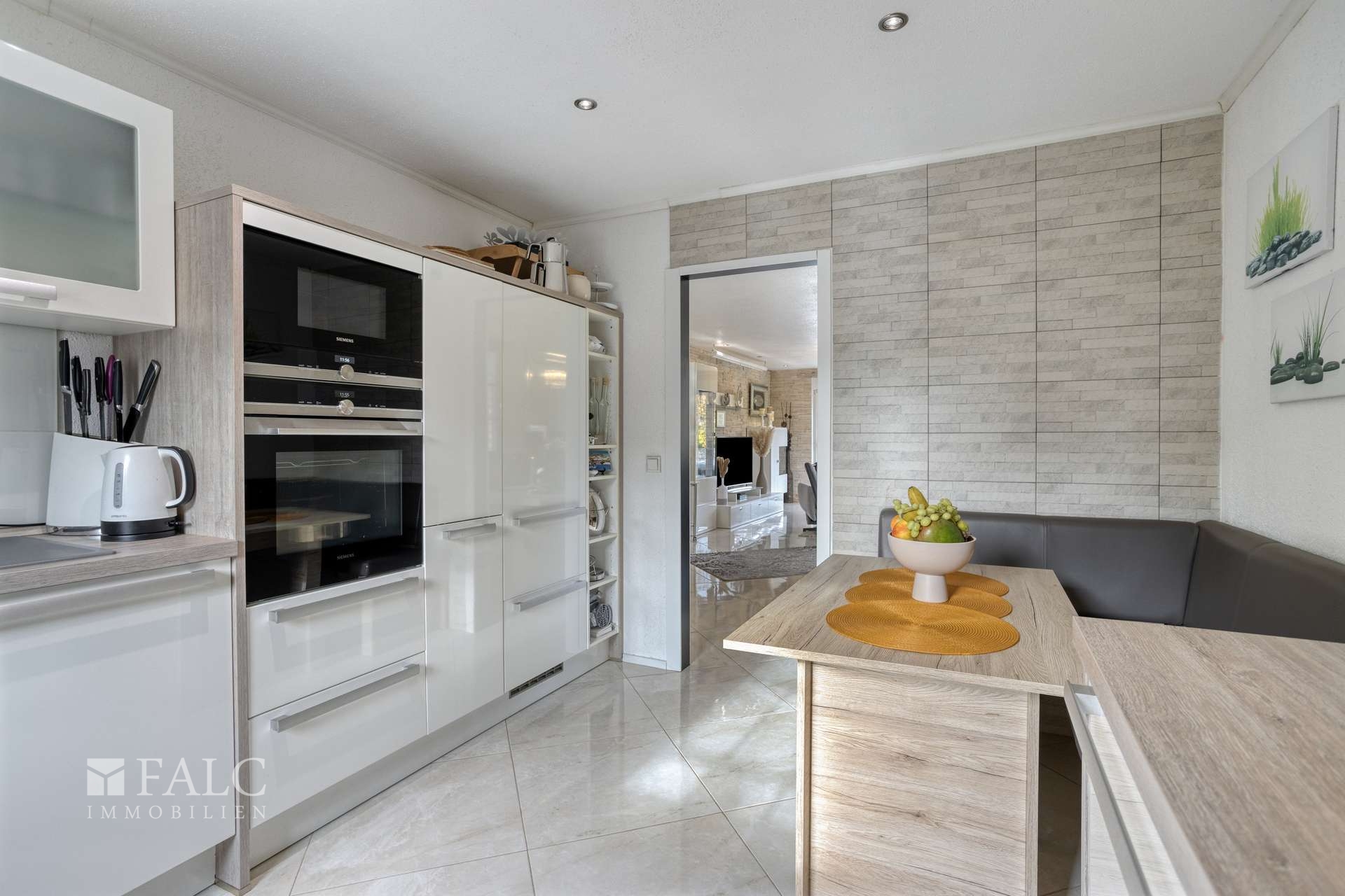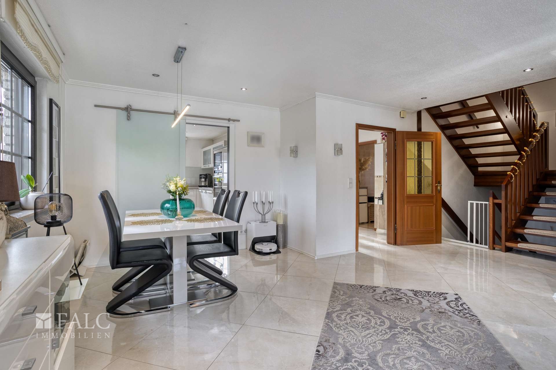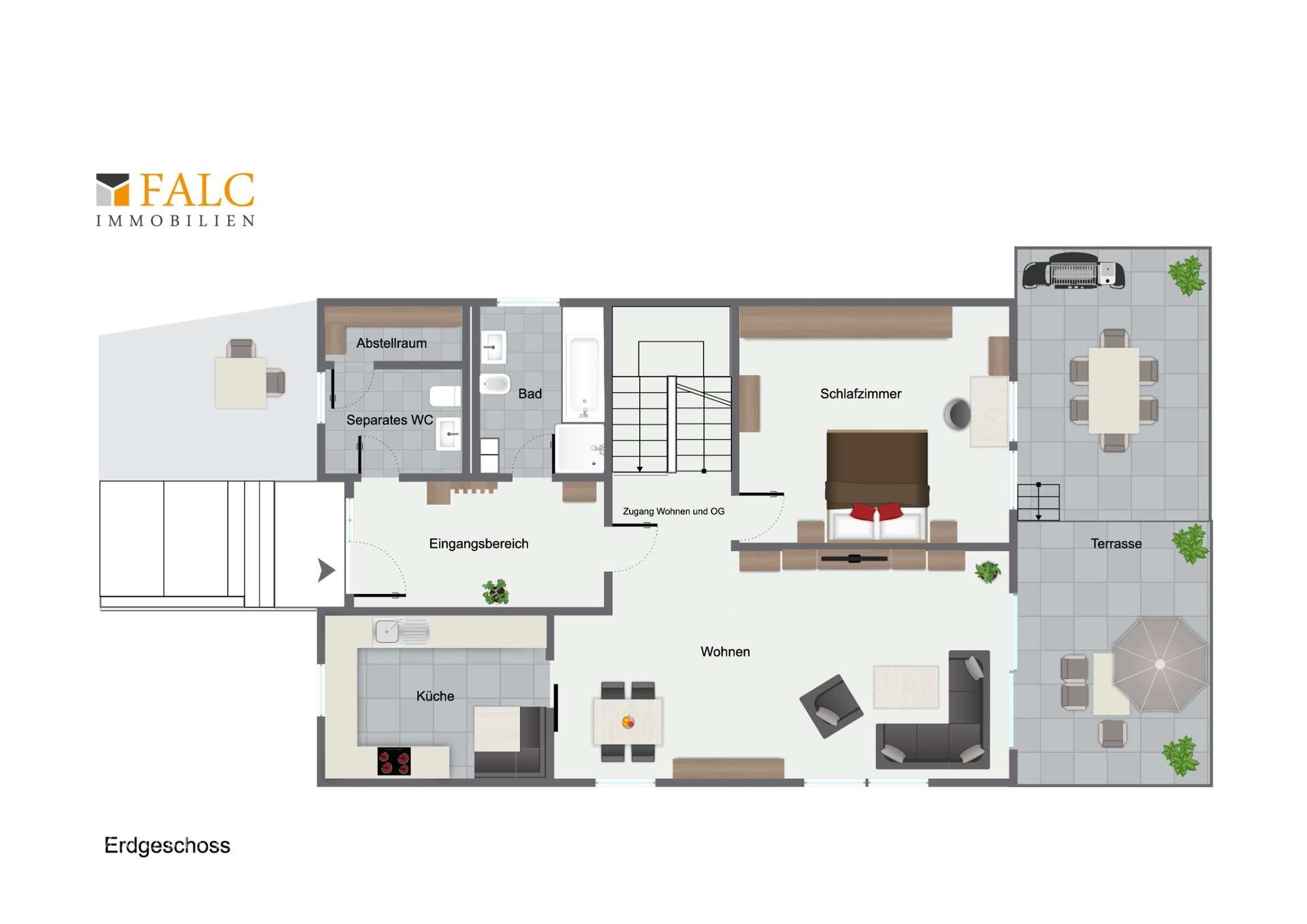 Schon beim Betreten empfängt Sie eine helle, freundliche Diele, die den Weg in das Herz des Hauses weist: den großzügigen Wohn- und Essbereich. Große Fenster lassen viel Licht herein und öffnen den Blick in den liebevoll angelegten Garten. Von hier aus gelangen Sie direkt auf die sonnige Terrasse – der ideale Platz für gemütliche Stunden mit Familie und Freunden. Die moderne Einbauküche mit integrierter Sitzecke lädt zum gemeinsamen Kochen und Genießen ein. Ebenfalls auf dieser Ebene befindet sich das Elternschlafzimmer und das Masterbad. Ein extra WC für den besonderen Comfort rundet das Raumangebot ab.