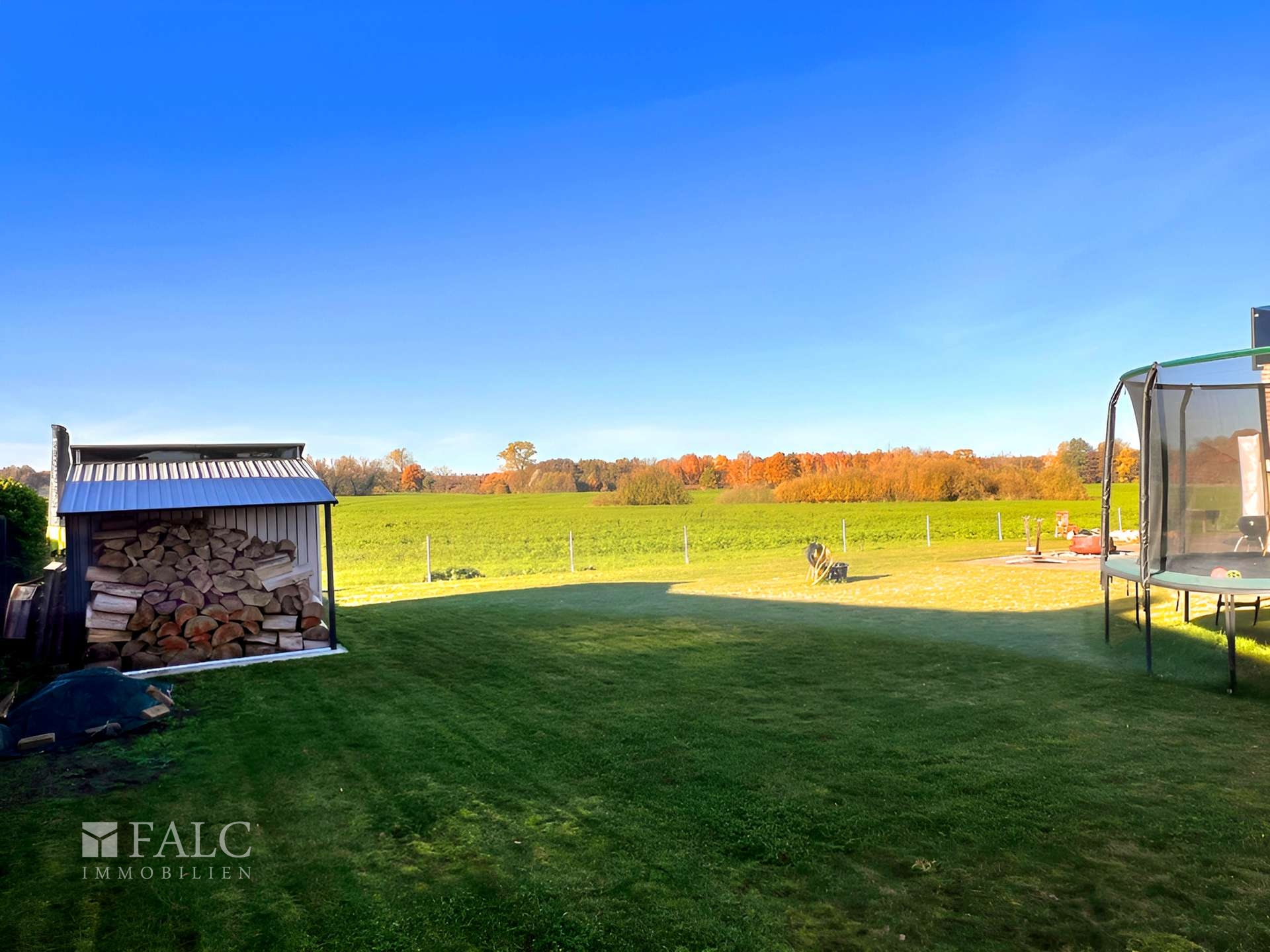Außenbereich: - Terrasse (ca. 80m²) mit Zugang vom Essbereich - Doppelcarport (ca. 36m²) und zusätzliche Garage (ca. 18m²) - großzügiges, gepflegtes Grundstück mit viel Platz zum Entspannen - ruhige Feldrandlage