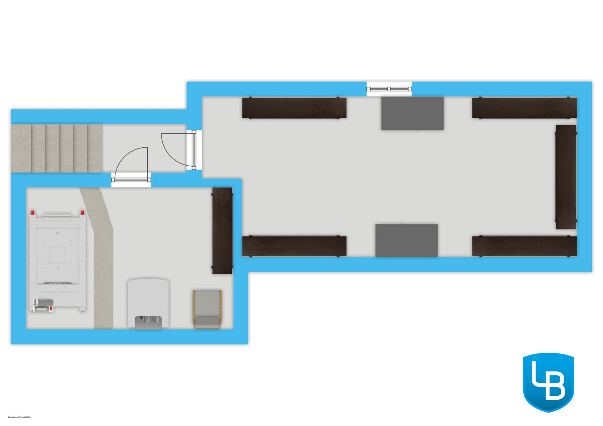 + Heizungsraum mit dem Öltank von außen zugänglich + Weiterer Kellerraum von außen zugänglich