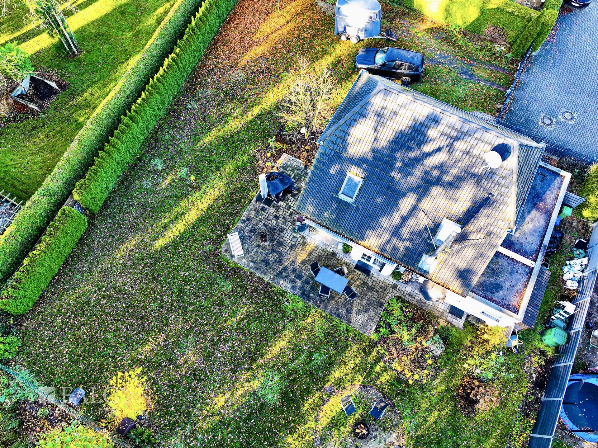 Außenbereich: + Großzügige Terrasse mit elektr. Markise + Dachkästen mit Einbauspots + Einzelgarage (Zapf) mit Abstellraum + Grüner Außenbereich + Beregnungsanlage + Rasenroboter (Husqvarna) + Grundstückstor elektrisch mit Fernbedienung