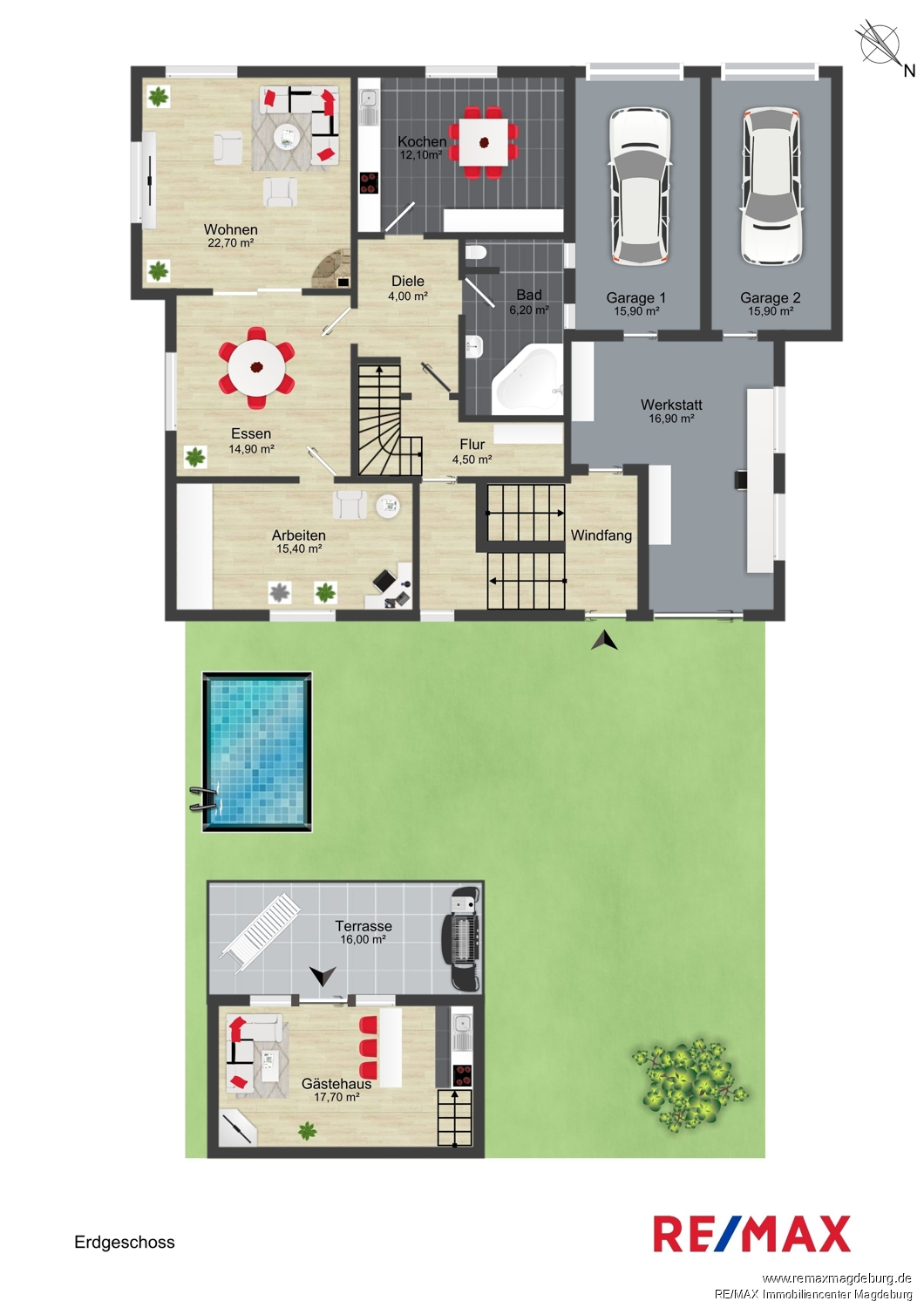 HausansichtNordostEingangsbereichDiele EGEsszimmer EGWohnen EGKüche EGBad EGSchlafen DGKind DGBad DGBüro DGPartyraumSaunaWellnessbereichGarten mit Pool Gästehaus mit TerrasseGästehausGrundstück von Oben KellergeschossErdgeschossDachgeschossLageplanKontaktHausansicht