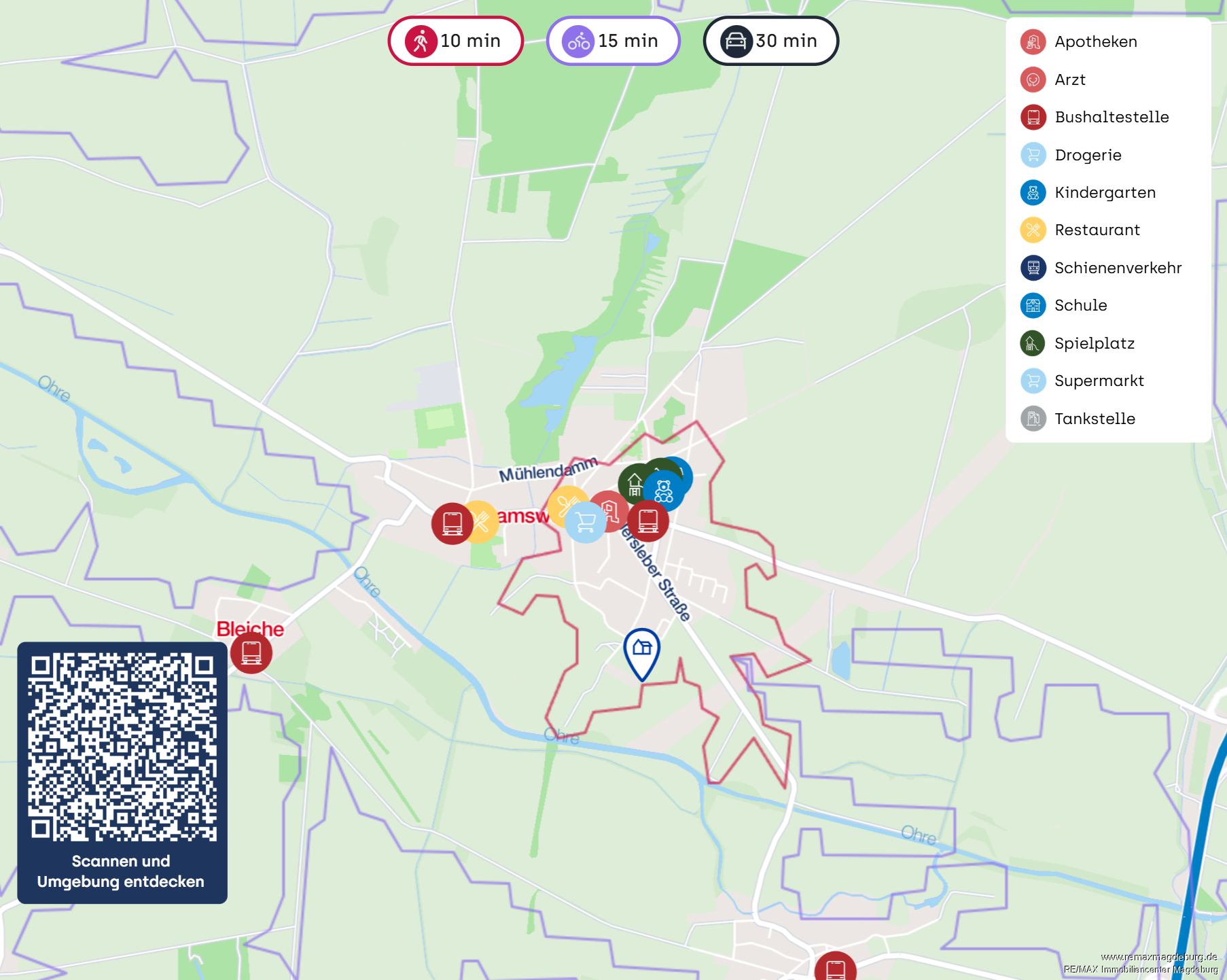Die Umgebung ist geprägt von weitläufigen Feldern, Wiesen und kleinen Wäldern – ideal für Naturliebhaber, Spaziergänger und Ruhesuchende. Trotz der ruhigen Lage sind die Anbindungen über die Bundesstraße B189 sowie die nahegelegene A2 sehr gut, was das Objekt auch für Pendler attraktiv macht. Einrichtungen des täglichen Bedarfs, Schulen und Ärzte befinden sich im nahegelegenen Ortskern von Samswegen oder in den Nachbargemeinden.