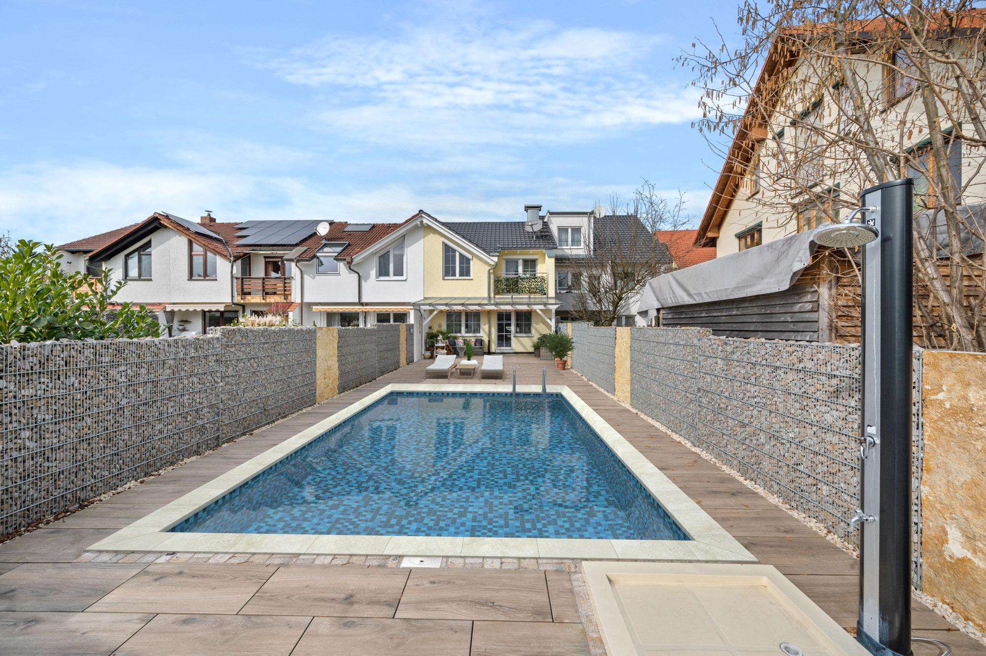 Wohnfläche: ca. 124 qm 5 Zimmer Grundstück: ca. 291 qm Garage Carport für 2 PKWs (2014) Hochwertige Einbauküche im Preis inklusive Pool (BJ: 2019, 6,30 x 3,50 m) Technischer Zustand: Komplettsanierung 2014-2015 3-fach-verglasste Fenster (2015), Überdachte Terrasse mit Glasdach (2015) Gartengestaltung: hochwertige Terrassenfliesen und Stein-Wände (2019) Heizung Gas Brennwerttechnik (2014) Dach: 2014