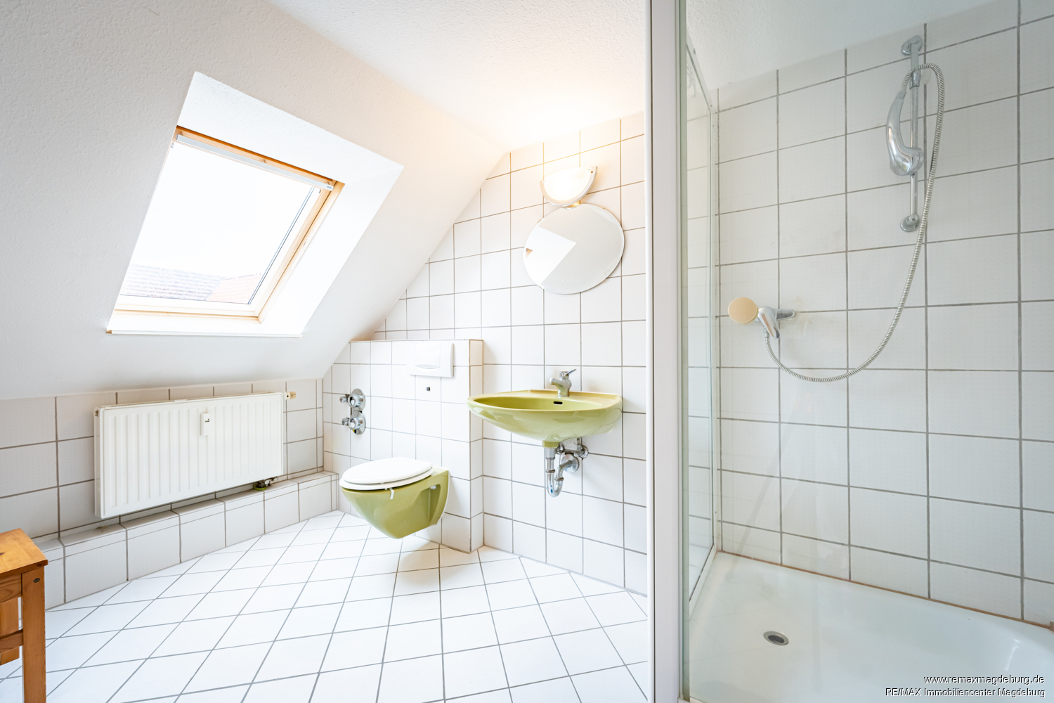 Dachgeschoss: - Wohneinheit 3, ca. 37m² Wohnfläche - Wohnraum, - kleine Küche, - Durchgang, - kompaktes Tageslichtbad mit Dusche,