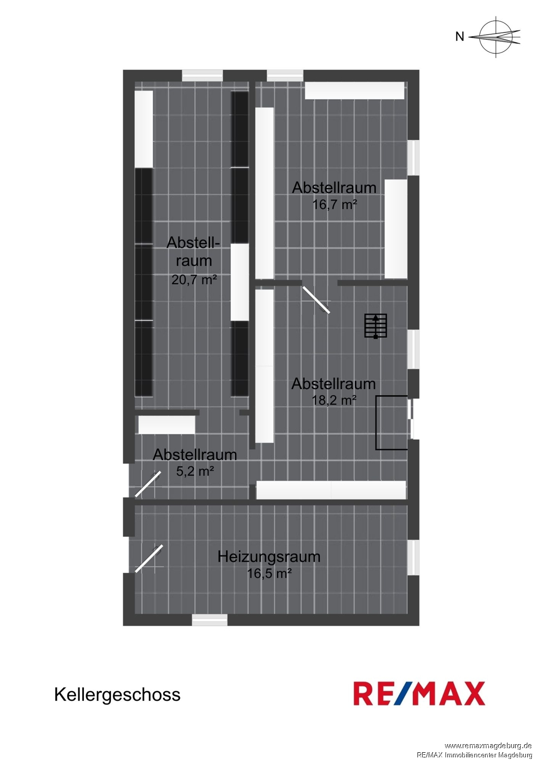 Kellergeschoss: - 4 getrennte Abstellräume für Lagerzwecke, - Heizungsraum,