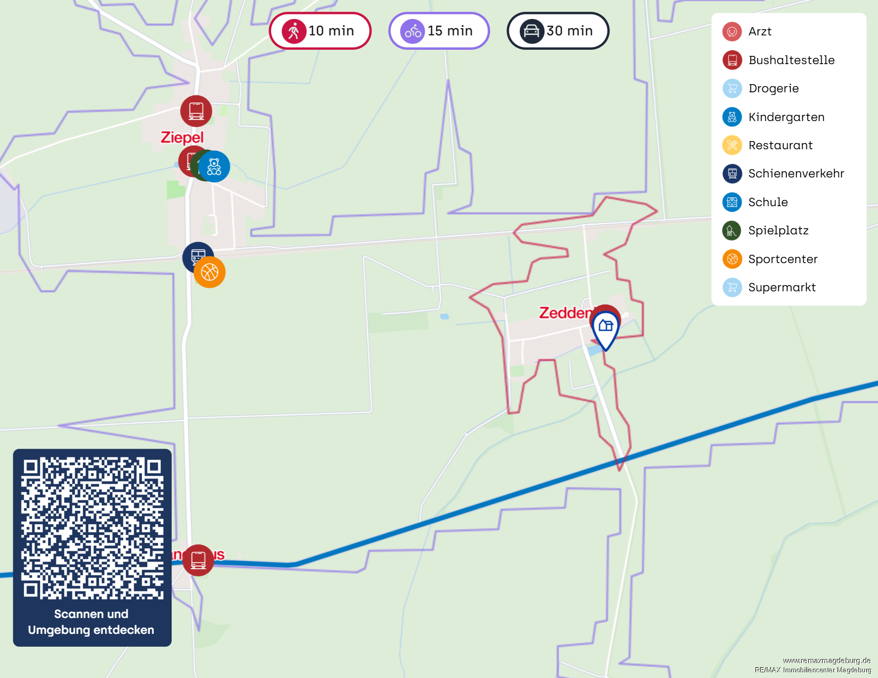 Die Immobilie befindet sich in idyllischer Lage im Ortskern von Zeddenick, einem ruhigen Ortsteil der Stadt Möckern im Landkreis Jerichower Land in Sachsen-Anhalt. Zeddenick ist ein traditionsreicher, ländlich geprägter Ort mit langer Geschichte – urkundlich erstmals im Jahr 992 erwähnt.Die Umgebung ist geprägt von weitläufiger Natur, Feldern und Wiesen und bietet eine naturnahe, familienfreundliche Atmosphäre. Die Immobilie liegt in einer 30 km/h Zone. Das direkte Umfeld ist geprägt von gepflegten Wohnhäusern, landwirtschaftlichen Betrieben sowie kleineren Handwerksunternehmen. In unmittelbarer Nähe der Immobilie befinden sich unter anderem eine historische romanische Kirche aus dem 12. Jahrhundert.
