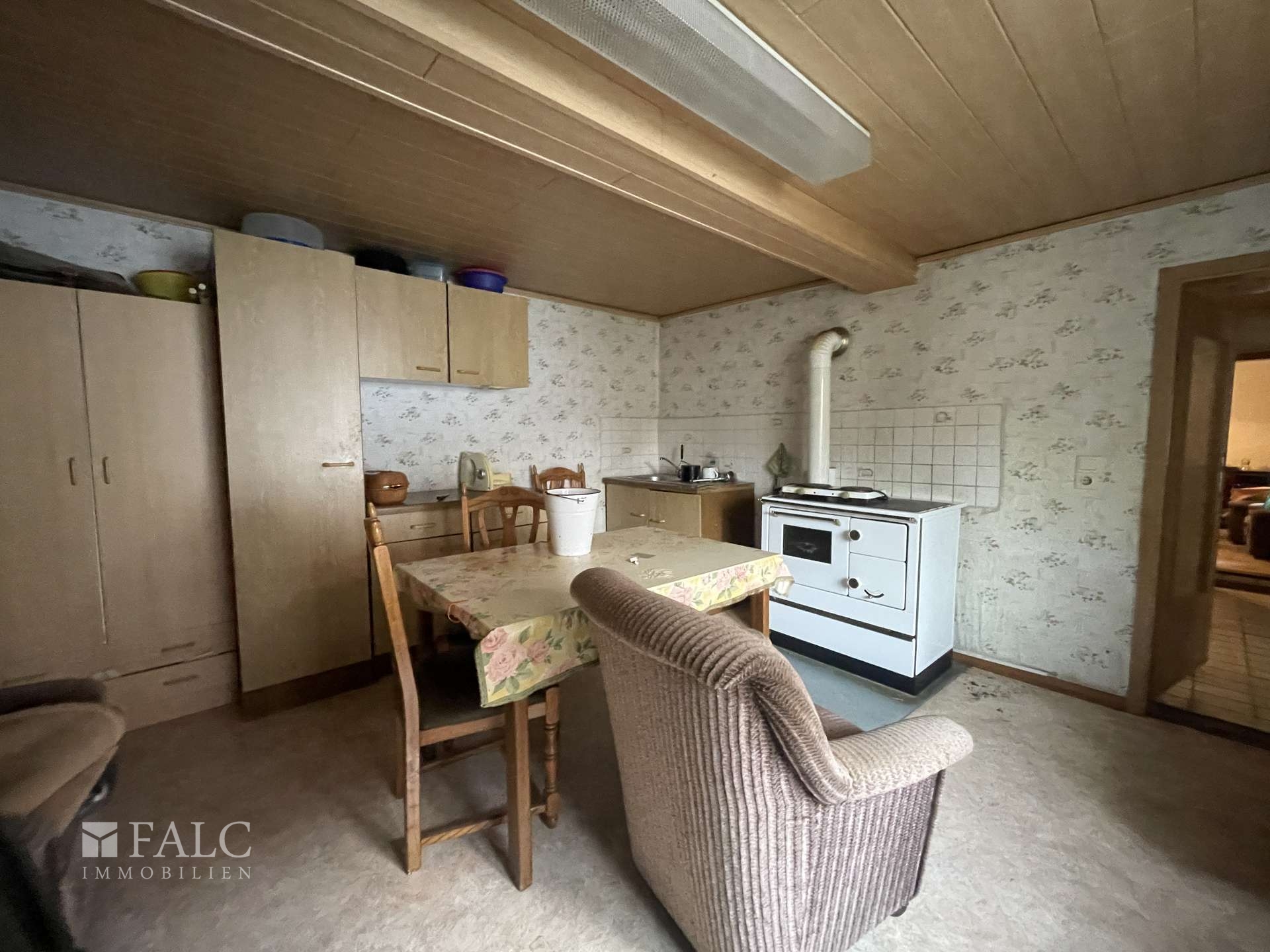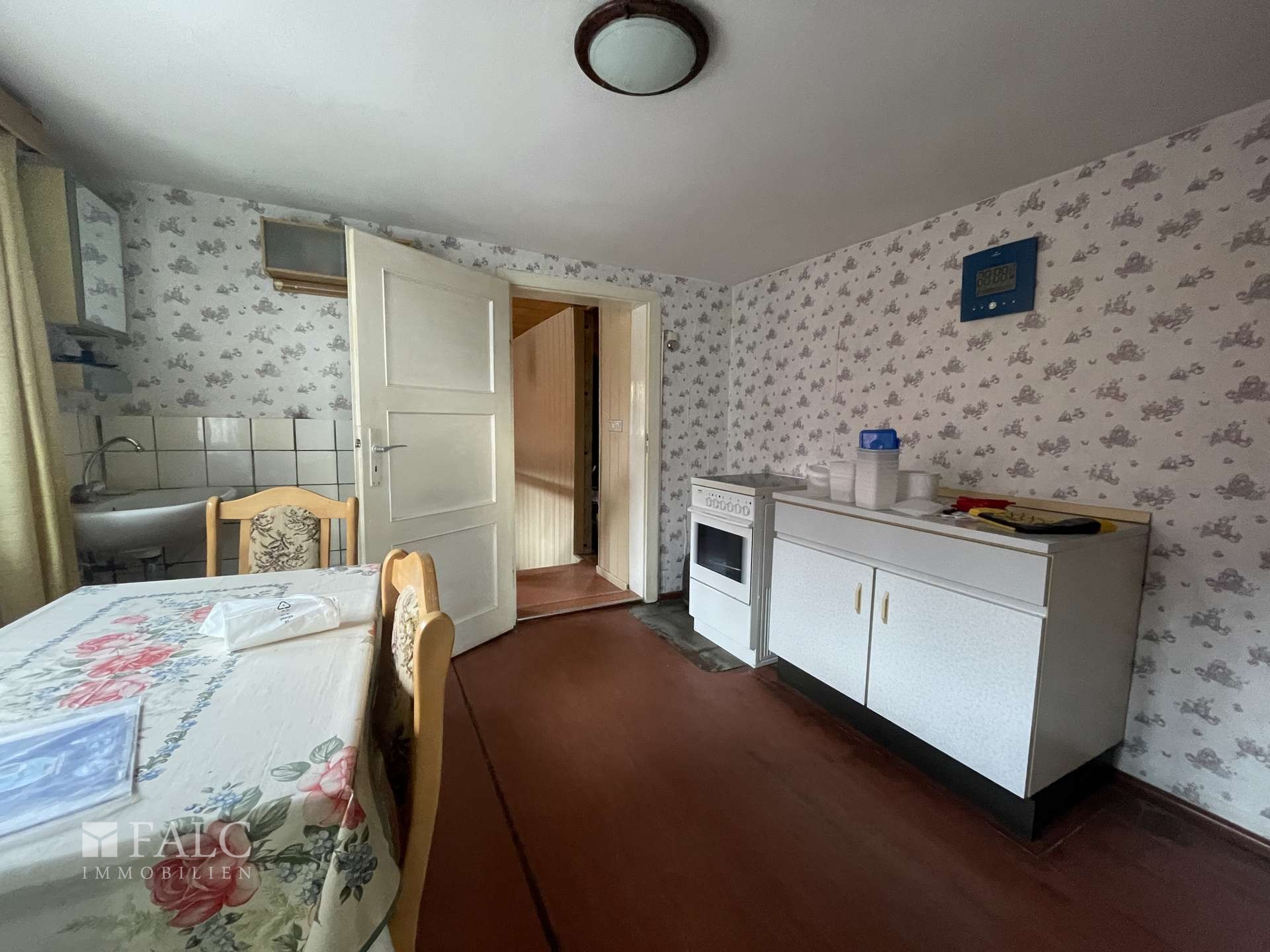 Die Immobilie ist allgemein in einem sanierungswürdigen Zustand. Von Abriss, über Kernsanierung bis hin zu kleineren Arbeiten Zimmer für Zimmer sind hier vorstellbar. Die Substanz und auch der Grundriss bilden eine solide Basis für Ihr Projekt und Ihre Familie.