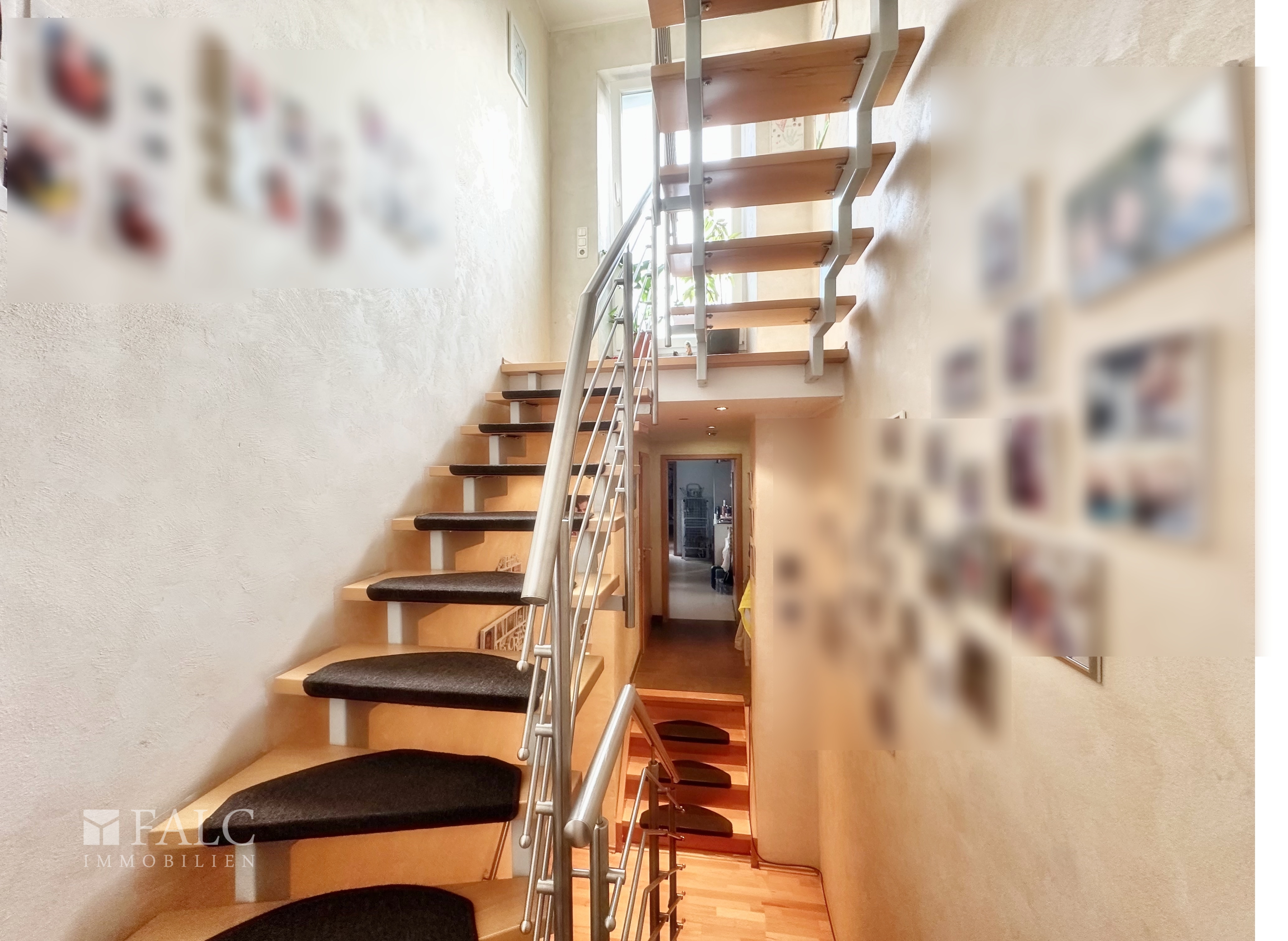 Ausstattung Wohneinheit: -sehr gepflegt - vermietet - Fünfzimmerwohnung über drei Etagen - ca. 137 m2 Wohnfläche und großzügige Dachterrasse - doppelverglaste Fenster teilweise aus 2008, mit elektrischen Rollläden - Badezimmer mit Tageslicht, Badewanne und Dusche - Gäste-WC - Fliesen und Parkettböden