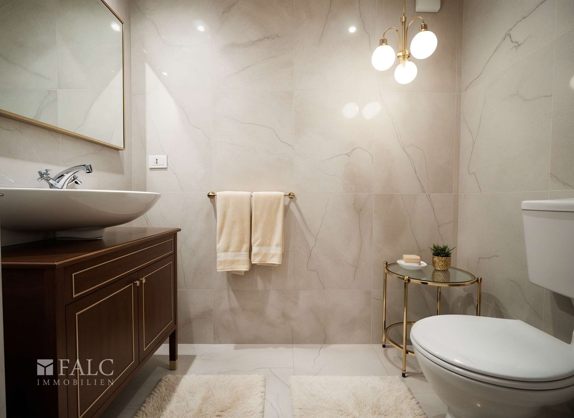 Die Wohnung verfügt über ein separates Gäste-WC, das den Komfort im Alltag erhöht, sowie ein Tageslichtbad, das sowohl mit Dusche als auch mit Badewanne ausgestattet ist. Die Kombination aus Tageslicht und praktischer Raumaufteilung sorgt für ein angenehmes Raumgefühl und flexible Nutzungsmöglichkeiten.