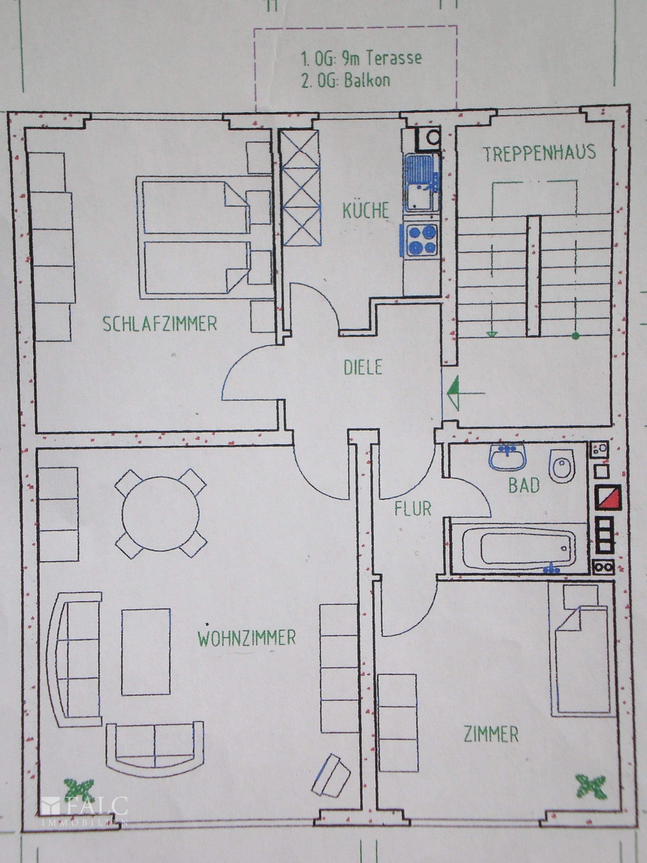 - Die Wohnfläche beträgt ca. 79 m² für die 3 Zimmerwohnung.