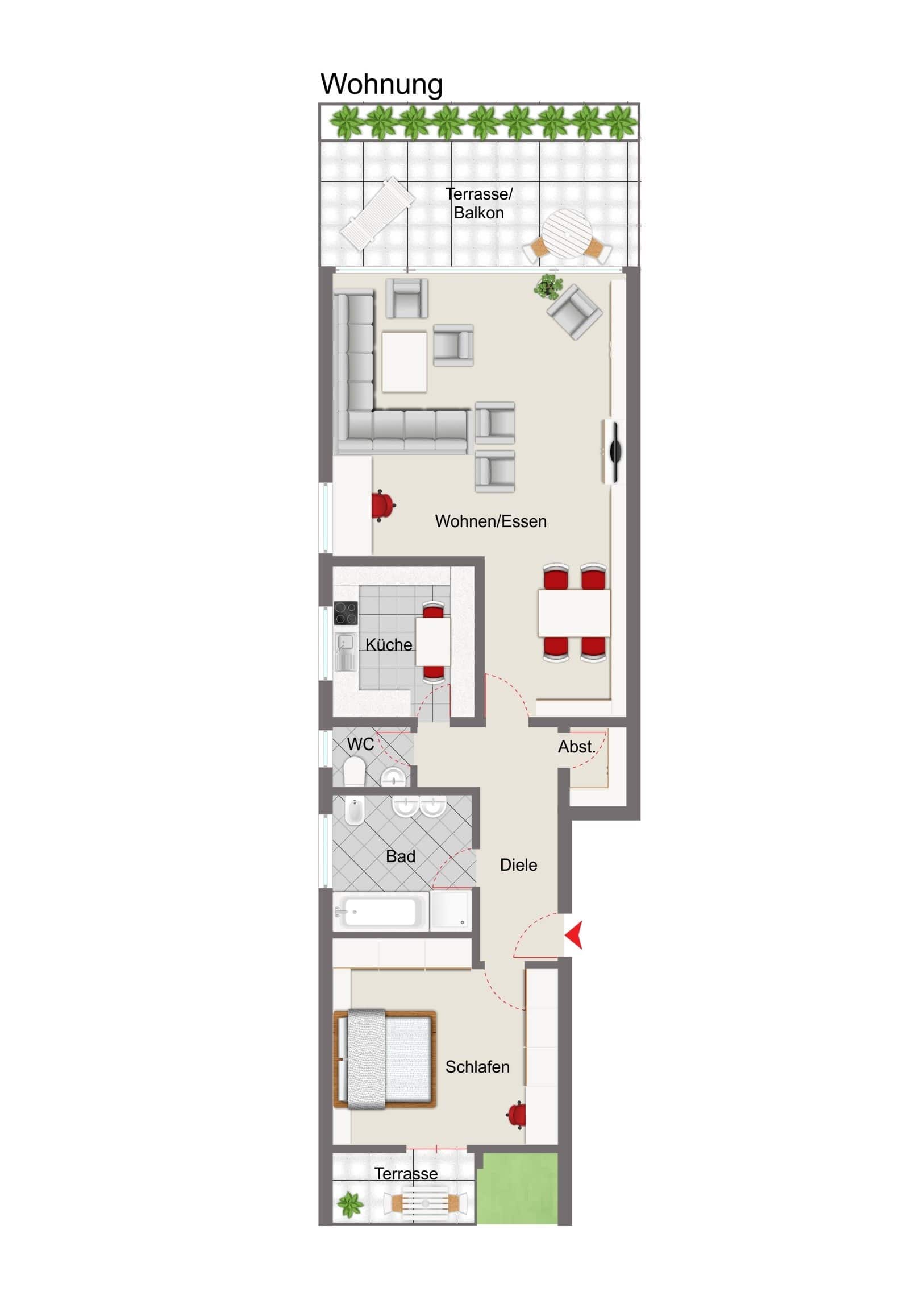 Die charmante Erdgeschosswohnung befindet sich in der Stadt Bad Salzuflen, einem bekannten Thermal-Heilbad, das seit 2015 als "allergikerfreundliche Kommune" gilt und seit Juni 2024 als staatlich prädikatisiertes Kneippheilbad zertifiziert ist. Knapp 2 km nördlich vom Stadtzentrum gelegen, bietet sie ein städtisches Flair und eine gute Anbindung an den öffentlichen Nahverkehr, mit einer Bushaltestelle in nur 200 m Entfernung und einem Bahnhof rund 1,8 km entfernt. Mehrere Arztpraxen sowie Apotheken liegen in der Nähe. Rund um die Wohnung gibt es zahlreiche Einkaufsmöglichkeiten, wie Supermärkte, Bäckereien und Drogeriemärkte, sowie gastronomische Angebote wie Cafés und Restaurants. Ungefähr 1,8 km entfernt befindet sich eine Autobahnauffahrt, die eine gute Verbindung zu umliegenden Städten bietet.