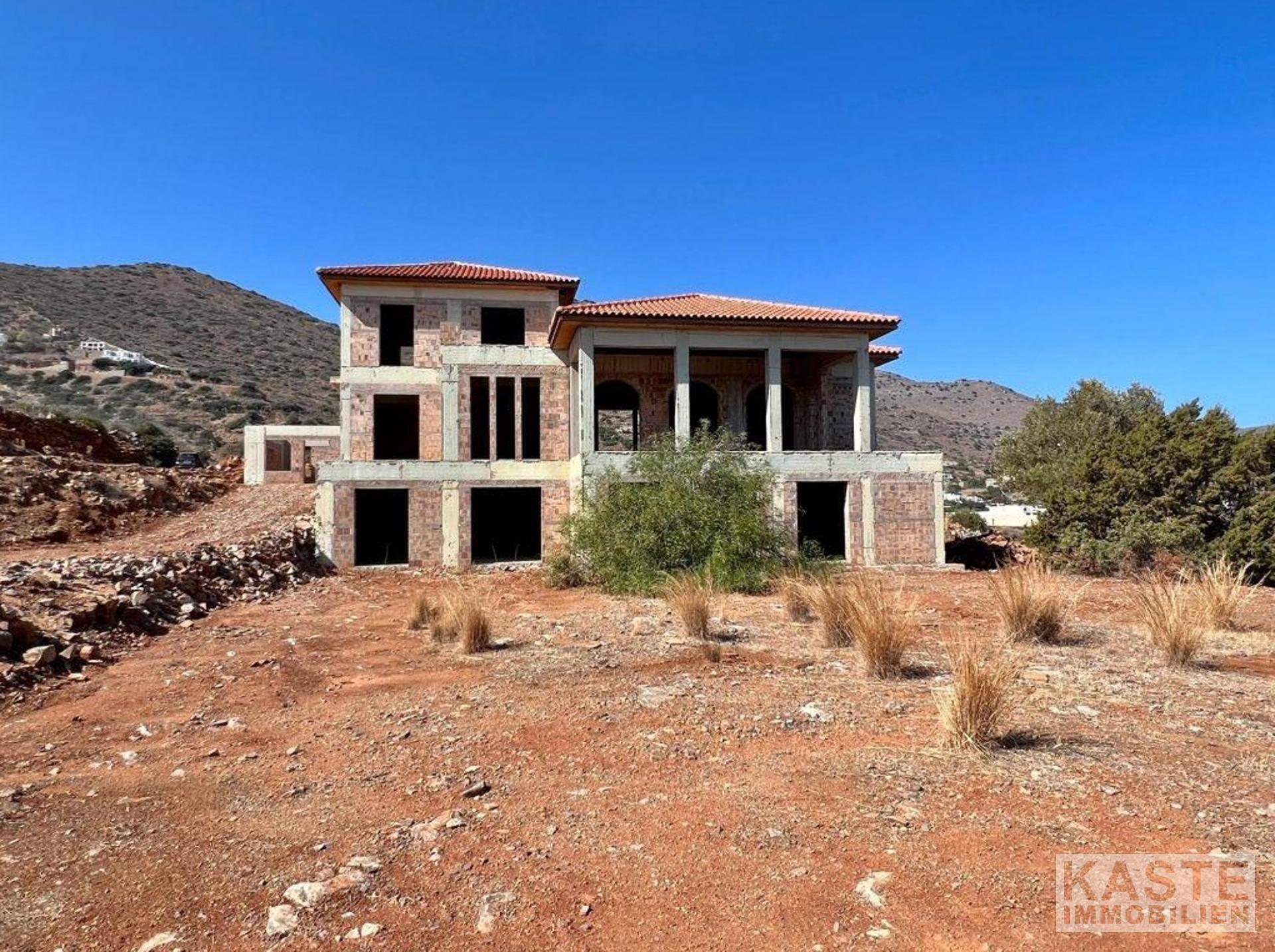 Zum Verkauf steht eine beeindruckende, noch im Bau befindliche Luxusvilla, die sich auf einem großzügigen Privatgrundstück von 7.000 Quadratmetern in der renommierten Gegend von Elounda, Kreta, erhebt. Diese prächtige Villa bietet nicht nur einen erstklassigen Standort, sondern auch einen atemberaubenden Blick auf die Bucht und ist nur 50 Meter vom Meer entfernt.