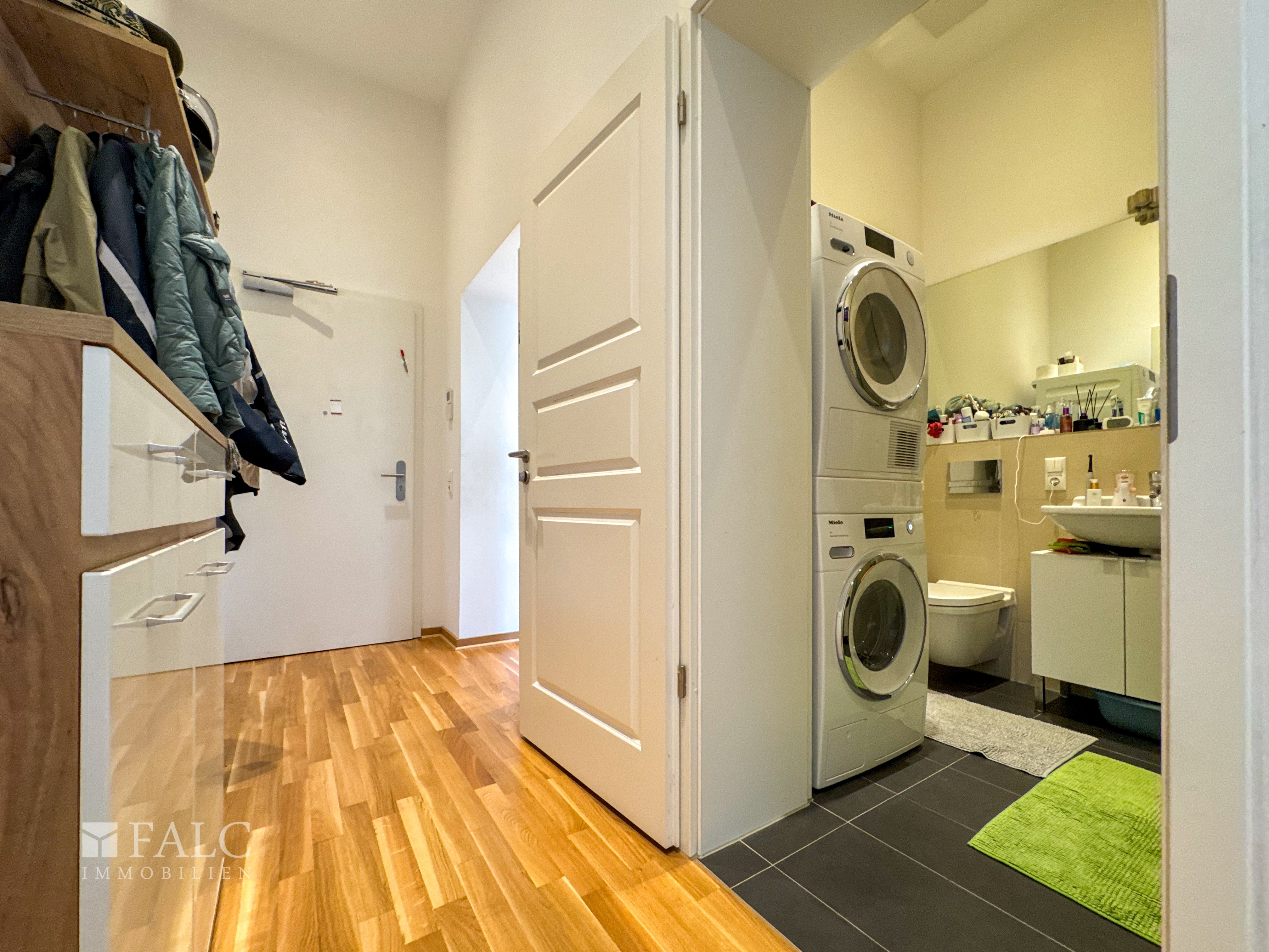 Mit insgesamt vier Zimmern eignet sich die Wohnung hervorragend für Familien, die besonderen Wert auf eine durchdachte Raumaufteilung legen. Beim Betreten des Apartments empfängt Sie ein einladender Eingangsbereich, der direkt in den offenen Wohn- und Essbereich führt. Große Fensterfronten sorgen hier für viel Tageslicht und schaffen eine angenehme Wohnatmosphäre. Von hier aus gelangen Sie beide Balkone, die zusätzlichen Raum für Entspannung im Freien bieten.