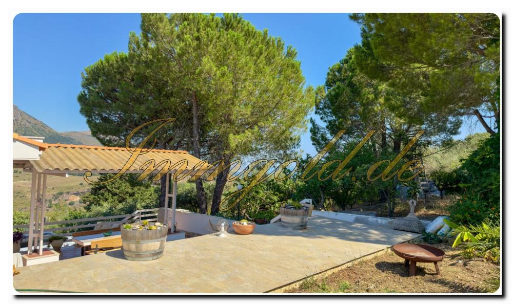 Dieses harmonische Landhaus mit Meerblick und großem Garten eignet sich hervorragend als Ferienhaus für den mittleren Preissegment in einer gut erreichbaren und malerischen Region im Norden Siziliens. Umgeben von Olivenhainen und Obstgärten, 380 Meter über dem Meeresspiegel und vier Kilometer landeinwärts in der Gemeinde Trabia, westlich von Termini Imerese. Nur fünfzehn Autominuten vom Strand entfernt, ist es auch sehr günstig gelegen für Ausflüge nach Palermo und Cefalu.Trotz dieser praktischen Lage befinden Sie sich dank der wenigen Kilometer Hügel, das Casa Ilona sowohl von der tyrrhenischen Küste als auch von der wichtigsten Autobahn Siziliens, der E90, trennen, in einer sehr ruhigen, friedlichen und landschaftlich reizvollen Gegend. Sie wird von einer angenehmen Brise gekühlt.