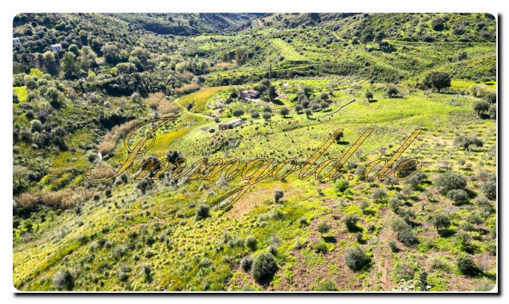 Das Grundstück umfasst etwa 25.000² hügeliges Gelände, das teilweise mit Olivenbäumen, einigen anderen Obstbäumen und mediterraner Vegetation bewachsen ist. Es fällt nach Südwesten ab, was den ganzen Tag über natürliches Licht und besonders warme Nachmittage gewährleistet. Die Vegetation hat sich nach einem Brand vor einigen Jahren gut erholt und ist nun fast vollständig wiederhergestellt.