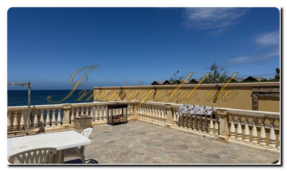 Die Villa liegt auf einem mit Bäumen bepflanzten, ca.1.000 m² großen Areal mit Vorgarten und einer erhöhten Terrasse auf der Rückseite, die einen traumhaften Blick auf den Sand und das Meer bietet. Die Terrasse im ersten Stock bietet einen noch besseren Ausblick.