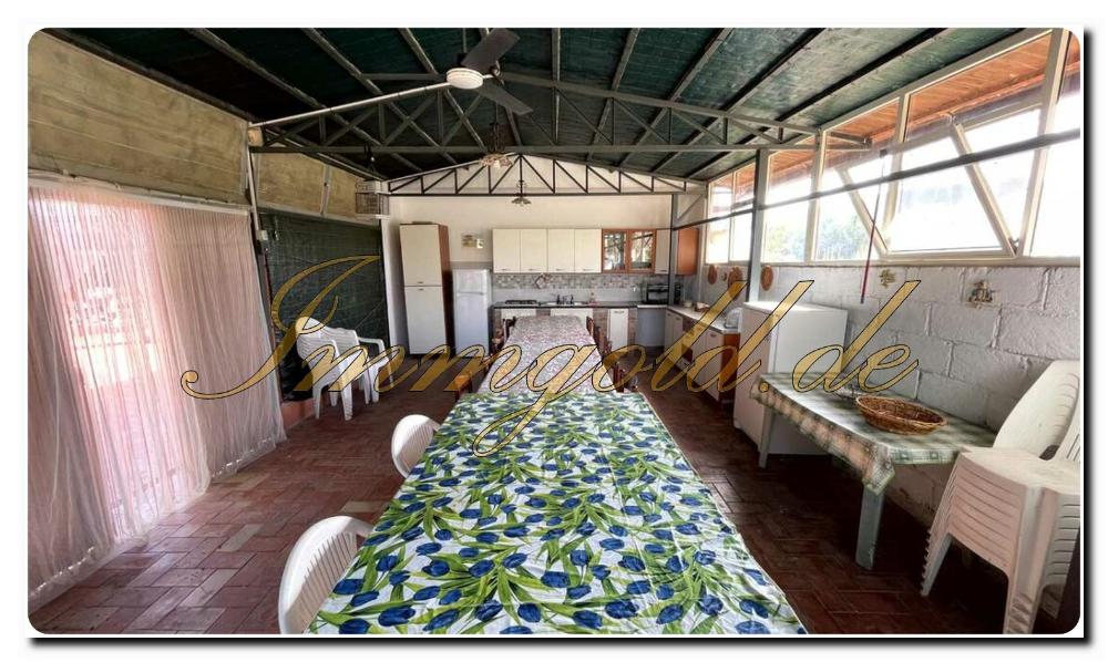 Ein erster Raum wurde als Lagerraum genutzt, in dem alle für die Pflege des Gartens notwendigen Werkzeuge gelagert werden können. An den Lagerraum grenzt ein großer Raum, der mit einem Holzofen, einer Küche und einem großen Esstisch ausgestattet ist, der es ermöglicht, Mittag- und Abendessen mit einer großen Anzahl von Gästen zu organisieren. Direkt gegenüber befinden sich eine Außendusche, ein Badezimmer mit Waschmaschine und eine erste ausgestattete Veranda.