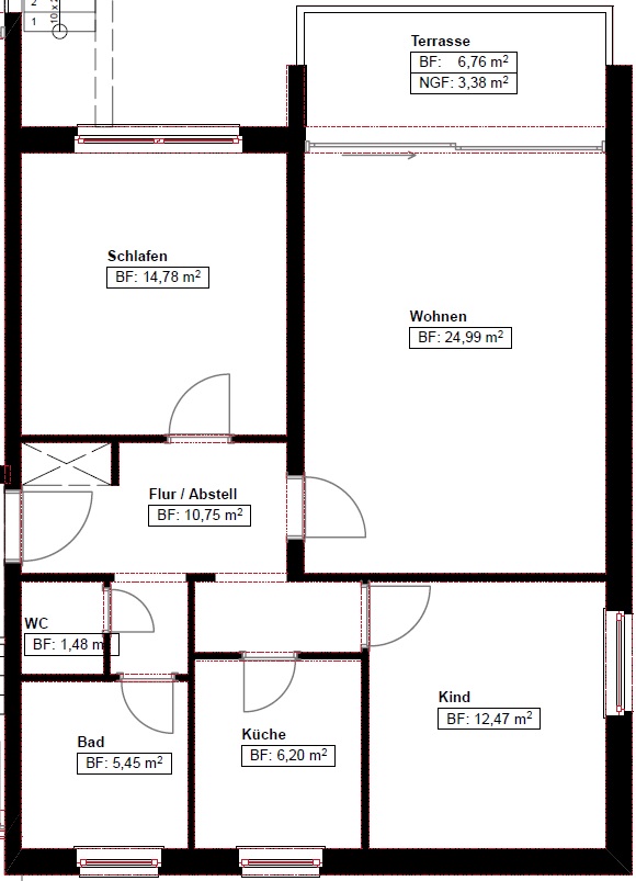 Wohn- und EsszimmerFlurBadezimmer Toilette separat GrundrissAußenansicht