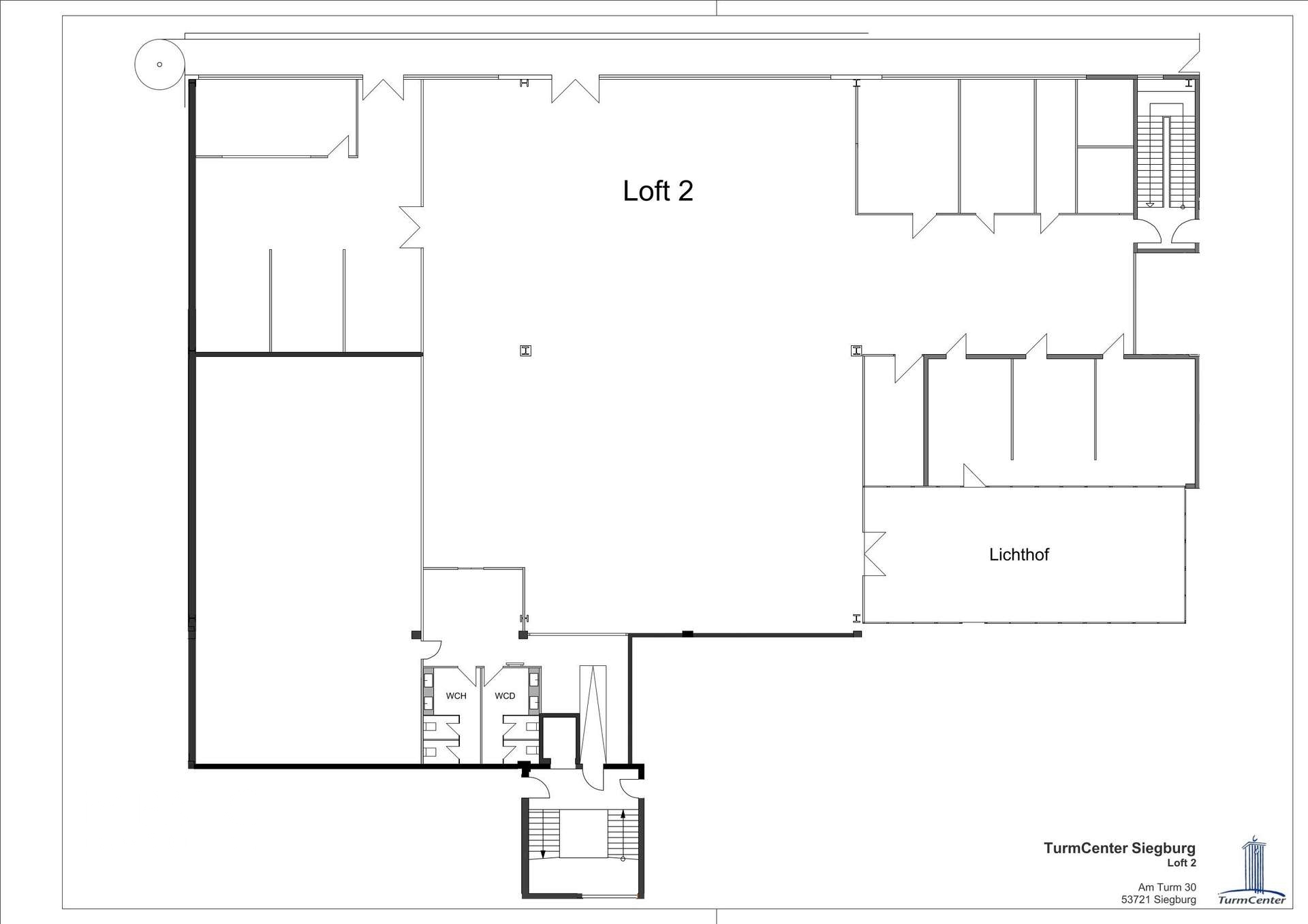 Loft 2 zeichnet sich durch eine großzügige Open-Space-Struktur aus, die vielseitige Gestaltungsmöglichkeiten für moderne Arbeitskonzepte bietet. Der offen gehaltene Grundriss ermöglicht flexible Zonierungen und fördert eine kommunikative und dynamische Arbeitsweise.