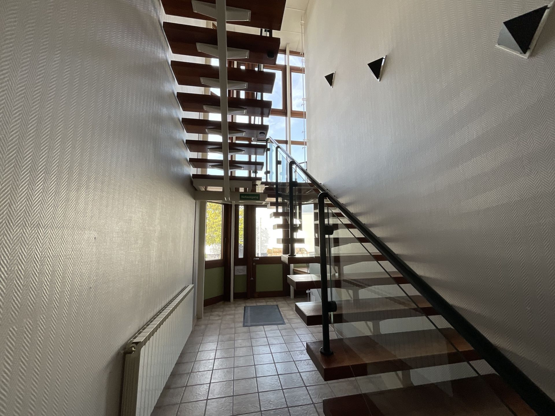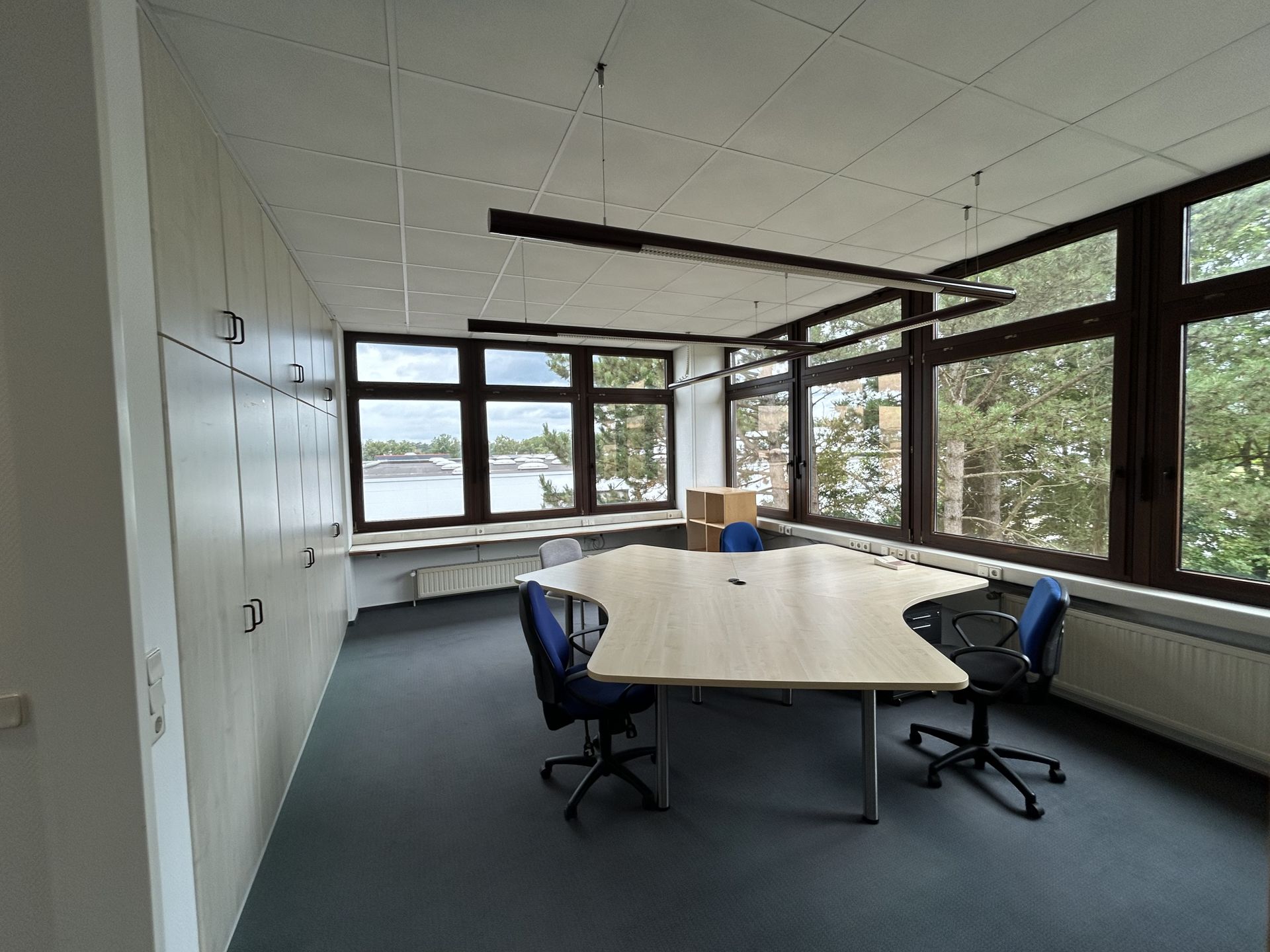 Der bei Bedarf teilbare Bürotrakt mit Haupt und Nebeneingang verfügt im EG über zwei Büroräume sowie einen Personalbereich mit Pausenraum, Umkleide und Sanitärräumen. Im Obergeschoss sind ein lichtdurchfluteter Konferenzraum, 6 Büroräume , ein siebtes Büro/Serverraum sowie Sanitärräume und eine Einbauküche vorhanden.