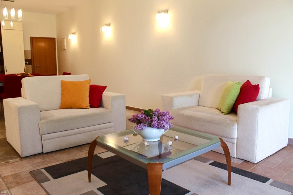Erdgeschoss: 2 Appartements mit je 2 Schlafzimmern, 2 Badezimmern, Wohnzimmer mit offener Küche und Essbereich Obergeschoss: Appartement mit 3 Schlafzimmern, 2 Badezimmern, Wohnzimmer, Balkon