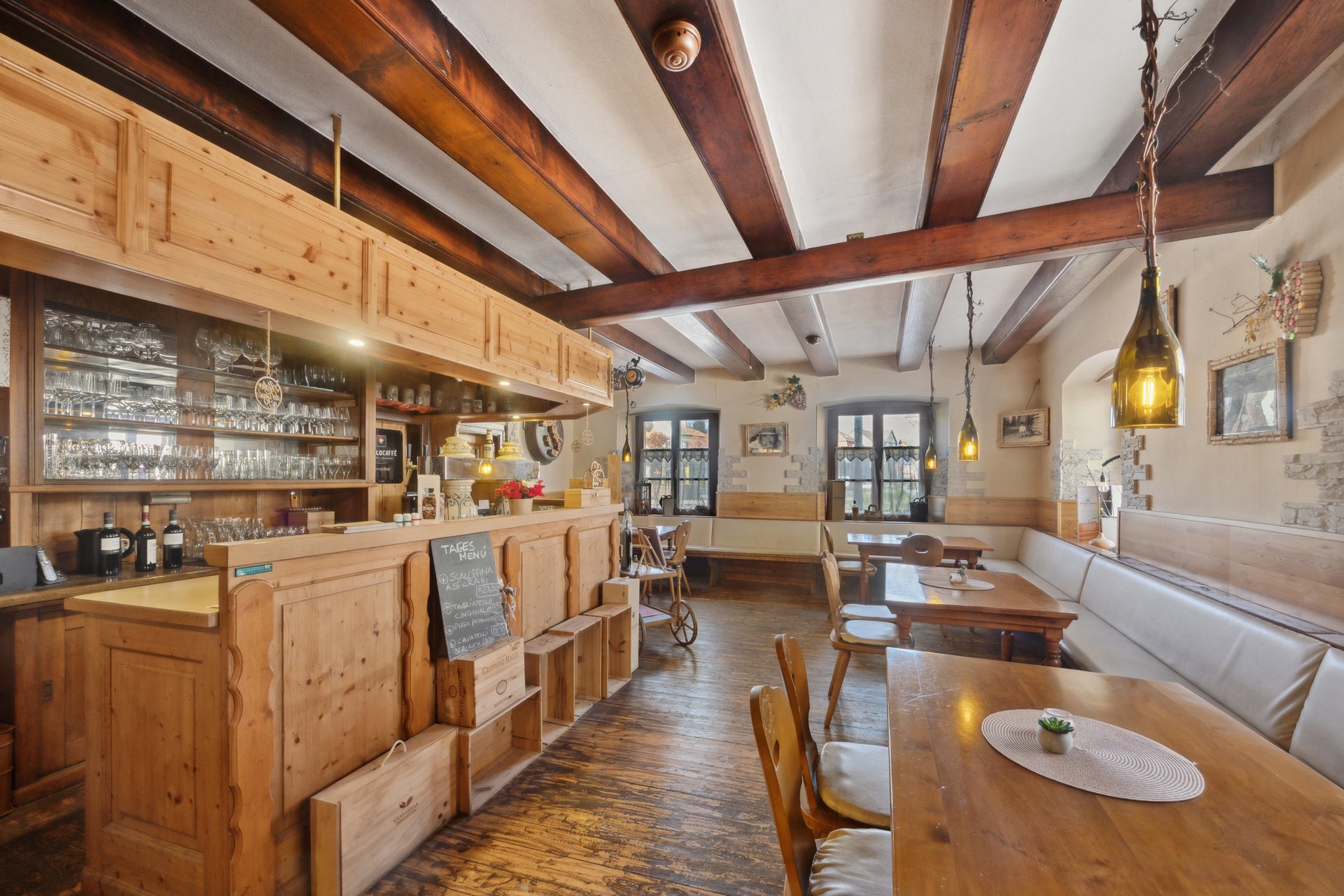 Im Erdgeschoss befindet sich ein ca. 250 m² großes Restaurant mit Gastraum, Nebenräumen und einer professionell ausgestatteten Küche. Im Obergeschoss stehen ca. 235 m² zur Verfügung, aufgeteilt in 6 Gästezimmer – ideal für Hotel- oder Pensionsbetrieb. Zusätzlich steht eine renovierte 2-Zi-Personalwohnung mit neuwertigen Einbauküche zur Verfügung.
