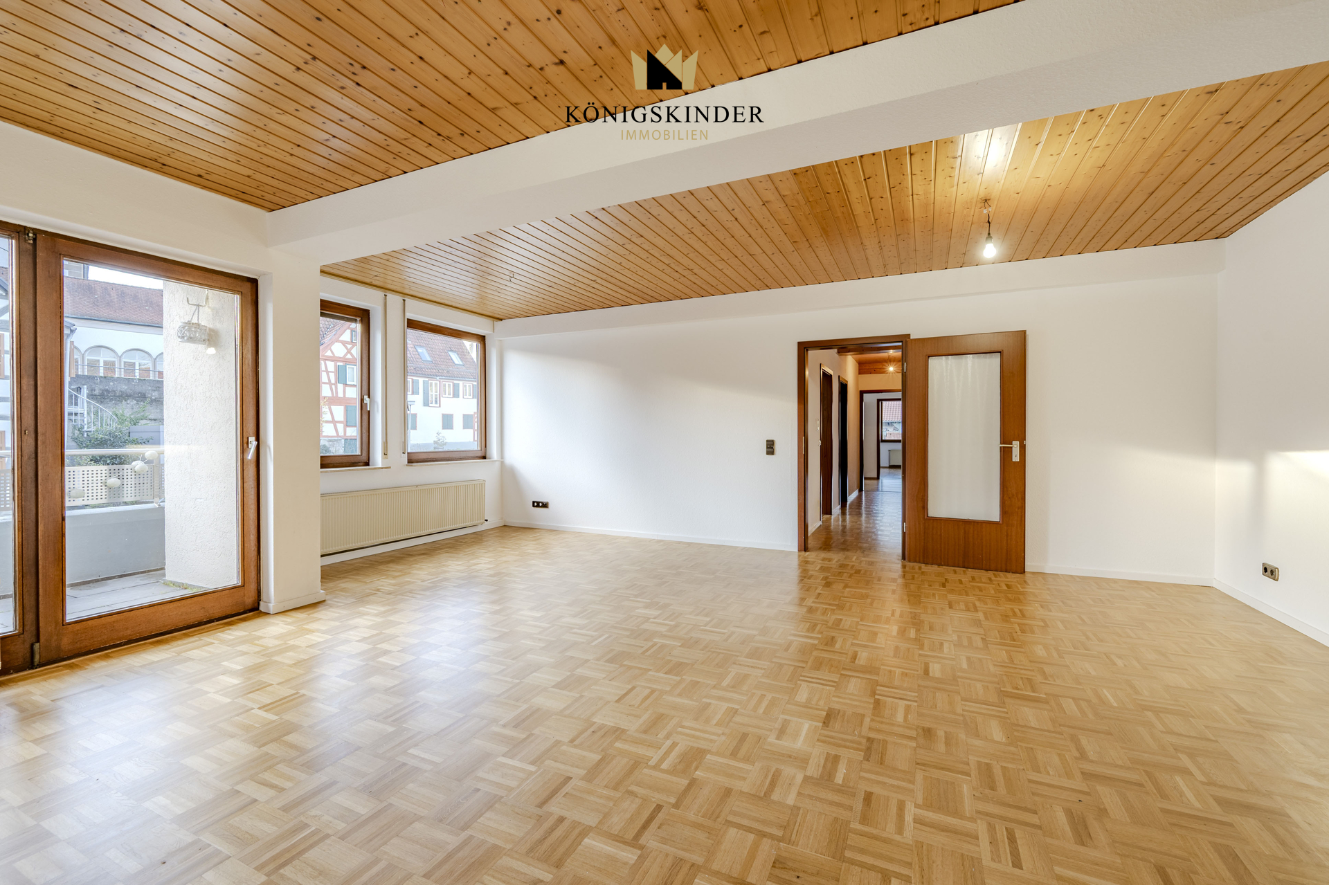 Ergänzt wird das Ensemble durch einen Anbau aus dem Jahr 1980, der funktionale Gewerbeflächen und großzügigen Wohnraum vereint. Besonders die leerstehenden Wohnungen – darunter ein modernes Dachgeschoss-Appartement mit Einbauküche, zeitgemäßem Bad und Dachterrasse – bieten hervorragende Voraussetzungen für eine wertorientierte Weiterentwicklung.