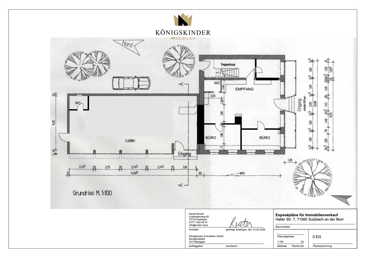 Anbau (Baujahr 1980) Erdgeschoss: ca. 102 m² Gewerbe Obergeschoss: ca. 110 m² Wohnung Dachgeschoss: ca. 86 m² Wohnung