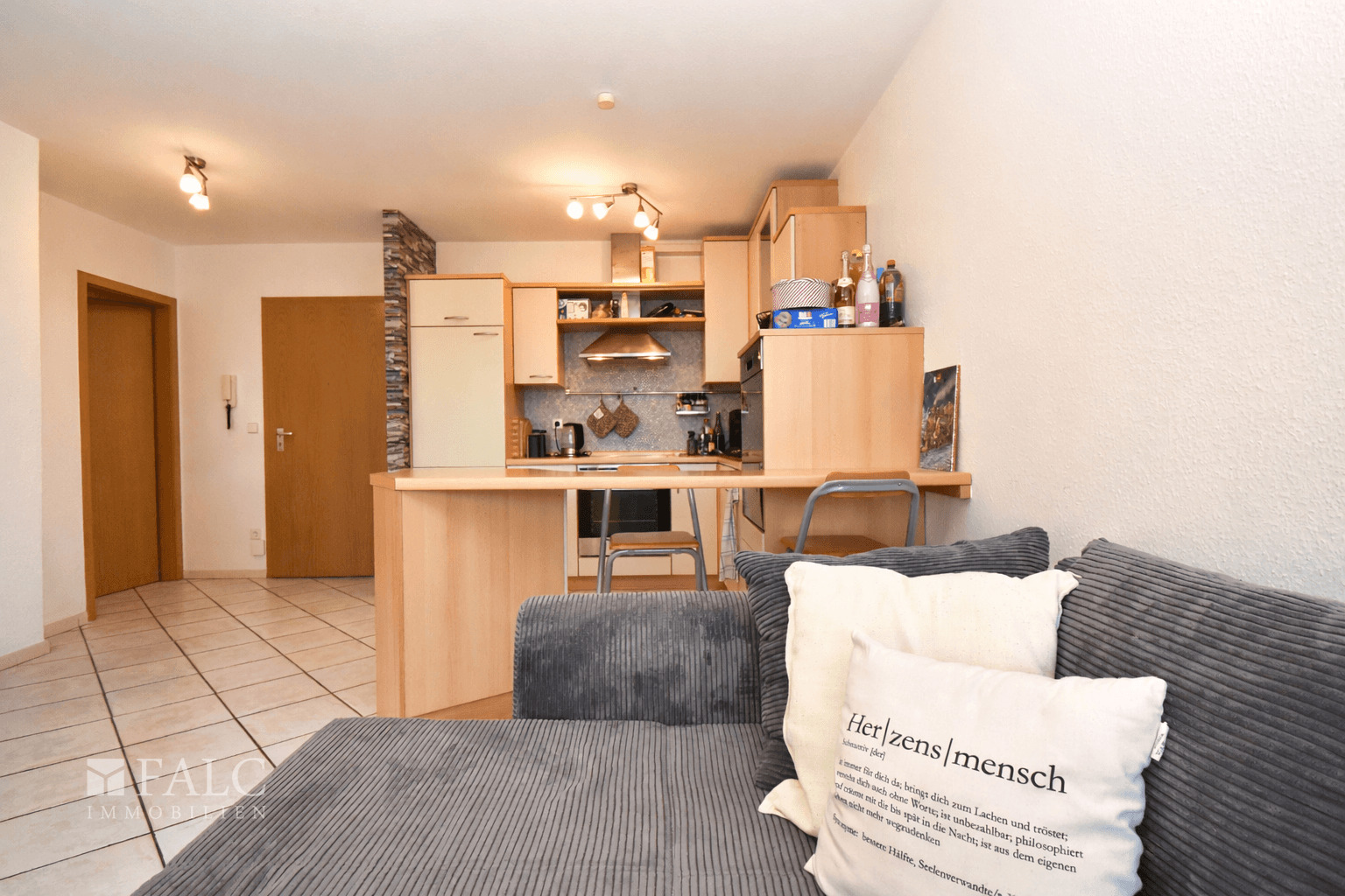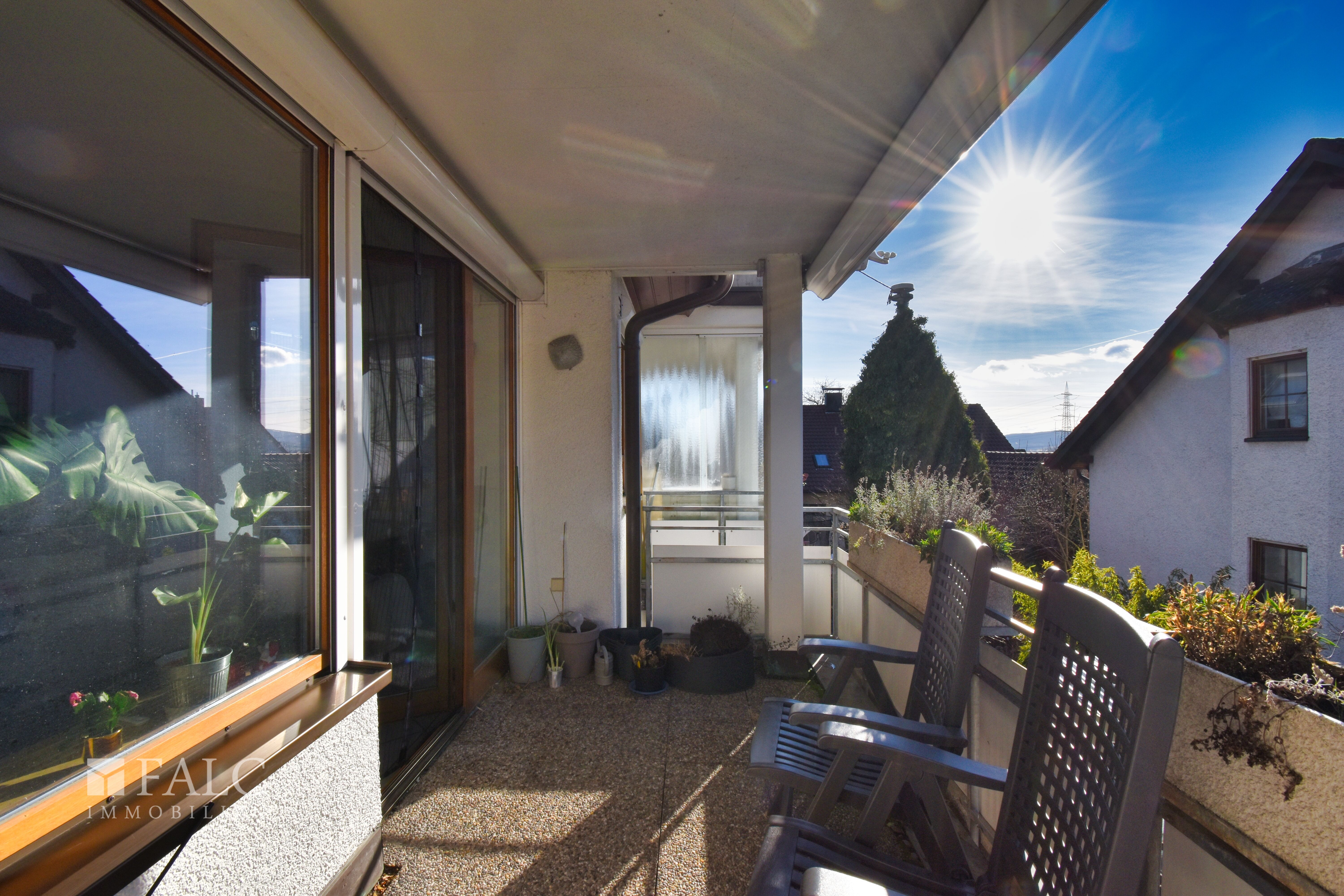 Sie betreten das gepflegte Treppenhaus und erreichen die Wohnung aus dem Baujahr 1997, gelegen im 1. Obergeschoss eines sehr gepflegten Gebäudes, das überwiegend von Eigentümern bewohnt wird. Hinter der Wohnungstür empfängt Sie ein kompakter Eingangsbereich, von dem aus sich die Räume praktisch erschließen. Hier ist Platz für Garderobe oder Schuhschrank, ohne dass der Wohnbereich verstellt wirkt. Geradeaus öffnet sich das Wohnzimmer als Mittelpunkt der Wohnung. Große, zum Teil bodentiefe Fensterflächen lassen viel Tageslicht herein und geben dem Raum trotz der kompakten Wohnfläche ein angenehmes Raumgefühl. Der Boden ist mit hellen Fliesen im Diagonalverband ausgelegt, was den Raum zusätzlich streckt. Eine gemütliche Sofaecke und ein TV-Bereich lassen sich gut anordnen. Die Küche ist offen in den Wohnbereich integriert und über eine Theke mit Sitzmöglichkeit verbunden. Die Einbauküche bietet Stauraum in Ober- und Unterschränken sowie eine durchgehende Arbeitsfläche. Sichtbar sind ein Backofen mit Kochfeld, Dunstabzug und eine Spülmaschine. So bleibt der Alltag funktional, während man beim Kochen im Kontakt mit Gästen oder Familie bleibt. Vom Wohnzimmer aus treten Sie auf den überdachten Balkon. Er bietet genug Tiefe für einen kleinen Tisch und Stühle. Pflanzkästen können hier gut platziert werden und zusätzlich sorgt eine Markise für angenehmen Schatten. Ideal für eine Auszeit an der frischen Luft. Zurück in der Wohnung führt der Weg ins Schlafzimmer. Der Raum wirkt ruhig und gut möblierbar, mit Platz für Bett und zusätzliche Möbel. Ein separater Bereich mit großen Holz-Lamellentüren ist als Ankleide nutzbar und sorgt für ordentliches Verstauen. Das Badezimmer ist zeitlos hell gefliest und mit einer Dusche mit Glasabtrennung, Waschbecken, Spiegel und WC ausgestattet. Dunkle Bodenfliesen setzen einen klaren Kontrast. Technische Ausstattung und Energie: Die Wohnung verfügt über einen Glasfaseranschluss für schnelles Internet, eine Fußbodenheizung für angenehme Wärme und ist der Energieeffizienzklasse B zugeordnet, was ein Pluspunkt für niedrige Nebenkosten und nachhaltiges Wohnen bedeuten. Ergänzend stehen ein eigener Kellerraum sowie ein Stellplatz am Gebäude zur Verfügung. Die Wohnung ist aktuell an eine äußerst zuverlässige und liebenswerte Mieterin vermietet, die ihre Miete stets pünktlich bezahlt. Damit eignet sich die Immobilie nicht nur zum Selbstbezug, sondern auch hervorragend als sichere und zuvorkommende Kapitalanlage. Für weiterführende Informationen zum Mietverhältnis kontaktieren Sie mich gerne persönlich.