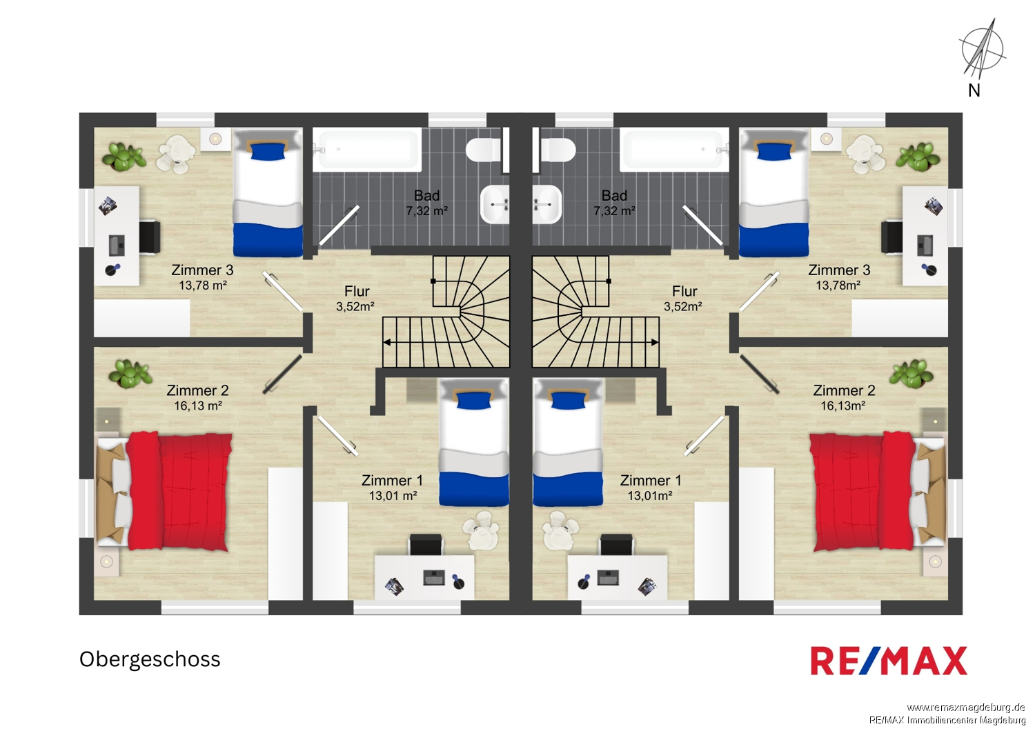 Die Immobilie besteht aus zwei identischen Wohneinheiten mit jeweils ca. 107 m² Wohnfläche (gesamt ca. 214 m²). Beide Einheiten sind zuverlässig vermietet und erzielen derzeit eine Jahresnettokaltmiete von insgesamt 23.760,00 Euro, was eine solide Anfangsrendite bietet. Die Grundstücksfläche von 441 m² ist effizient genutzt und bietet gleichzeitig Potenzial für eine nachhaltige Wertentwicklung.