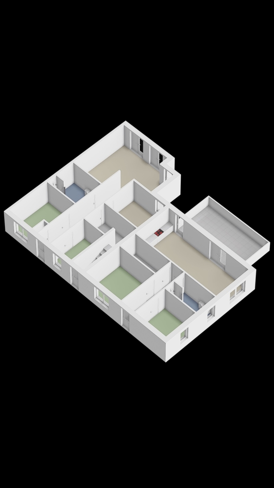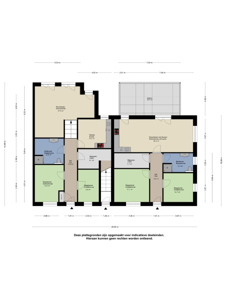 - Terrassen und Balkone: Zwei Wohnungen mit großzügigen Terrassen im Erdgeschoss und ein Balkon im Obergeschoss.