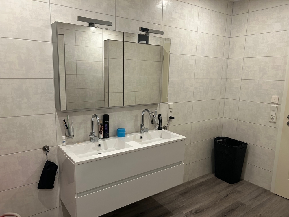 - Badezimmer: 11,02 m² (Wandtoilette, begehbare Dusche, Waschbecken)