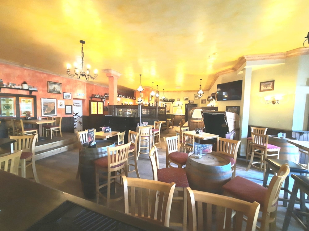 Das hier angebotene IRISH-PUB ist VOLL ausgestattet. Es verfügt u. a. über Einrichtungen wie z. B.; Tresen mit Zapfanlage u. Barbett-Kühltechnik-Spülbecken, USB Kassenanlage, begehbares Kühlhaus, Kühlanlagen, div. Kühlschränke. Arbeitstische mit Edelstahlarbeitsflächen, Zapfhahnleitung mit Begleitkühlung, Tische, Bestuhlung, Beleuchtung, Dekoration u..v. m.