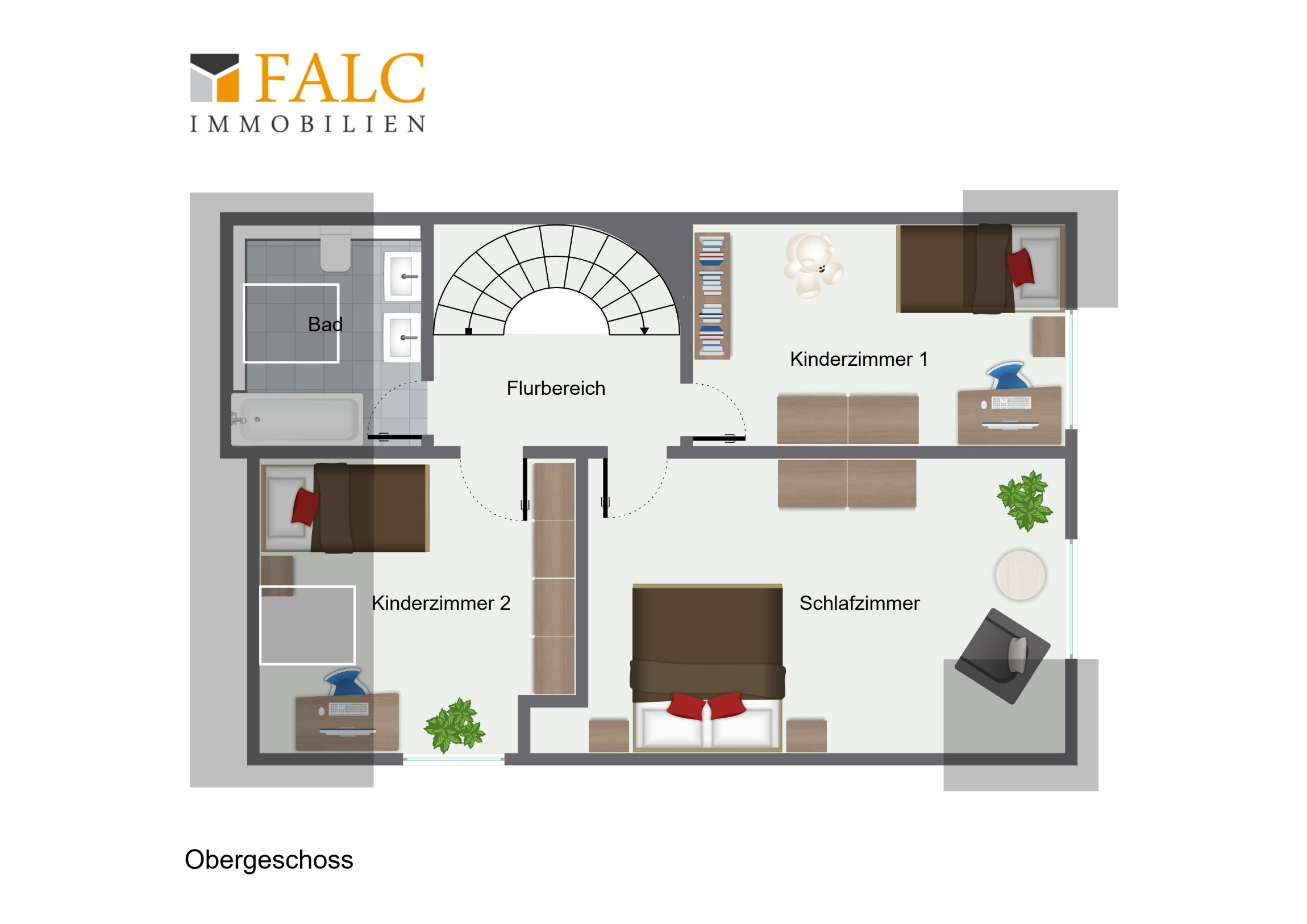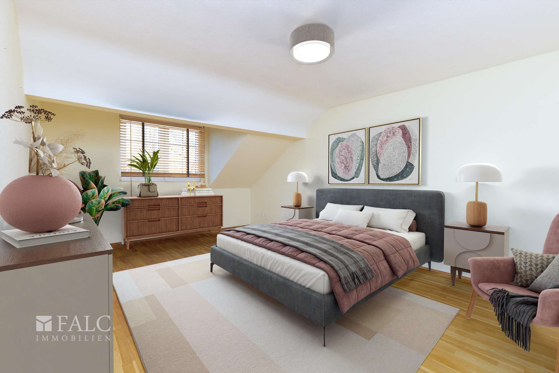 Im Obergeschoss finden Sie drei weitere Zimmer inklusive dem Familienbadezimmer. Durch die eingebauten Gauben ist die Zimmeraufteilung sehr praktisch und eröffnet diverse Nutzungsmöglichkeiten - Kinderzimmer? Büro oder Hobbyzimmer? Das Badezimmer mit Tageslichtfenster lässt keine Wünsche offen.