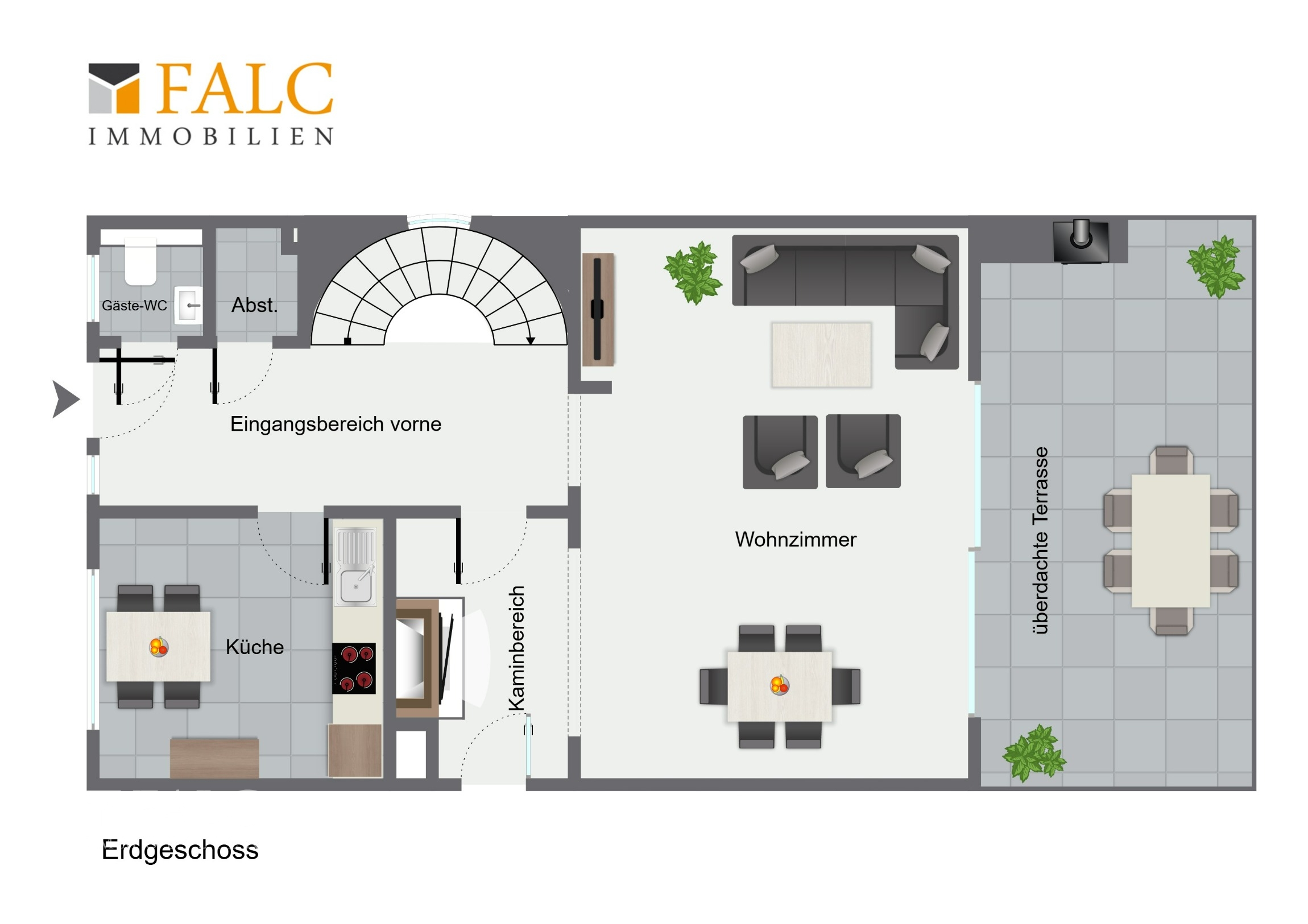 Ihr Eingangsbereich wird Sie bereits begeistern! Dieser ist breit, hell und offen. Ebenfalls verbindet dieser sämtliche Etagen des Hauses. Linker Hand befinden sich ein Gäste-WC sowie eine praktische Garderobe. Rechter Hand gelangen Sie in die Küche mit genügend Fläche für einen kleinen Essbereich. Ihr Wohnbereich ist mit über 30 Quadratmetern Fläche äußerst geräumig und wird Ihr zukünftiger Mittelpunkt für Familie und Freunde sein. Ein Kaminofen wurde wohnlich innerhalb eines halboffenen Kaminzimmers abgetrennt; eine schöne Gelegenheit für eine Lese-Ecke oder für einen Essbereich neben der Küche? - Sie entscheiden.