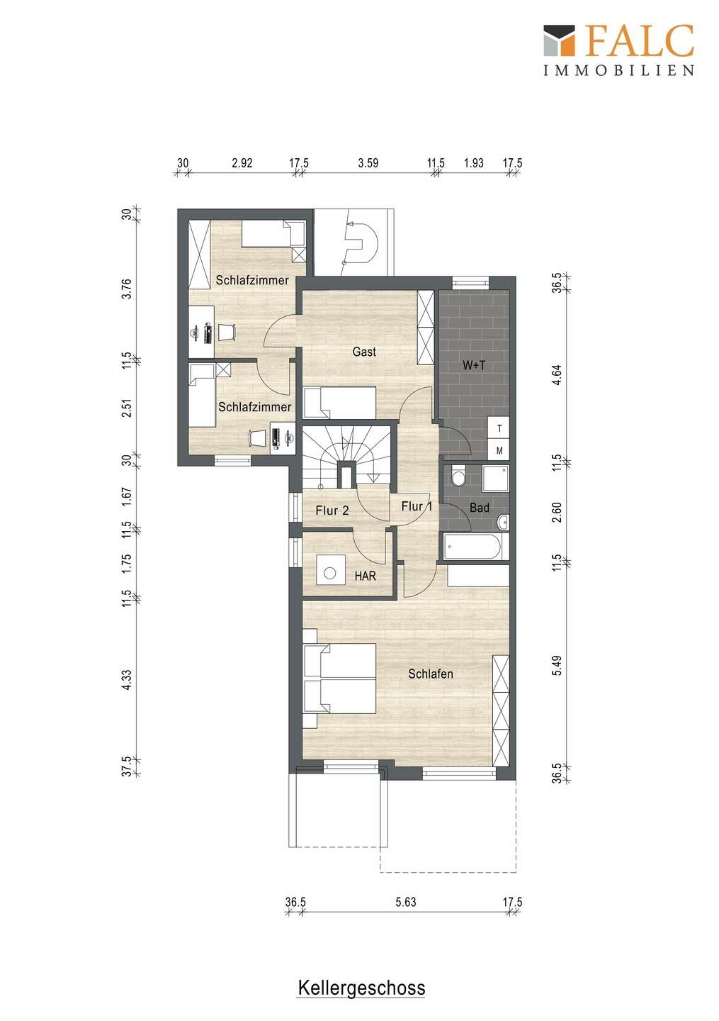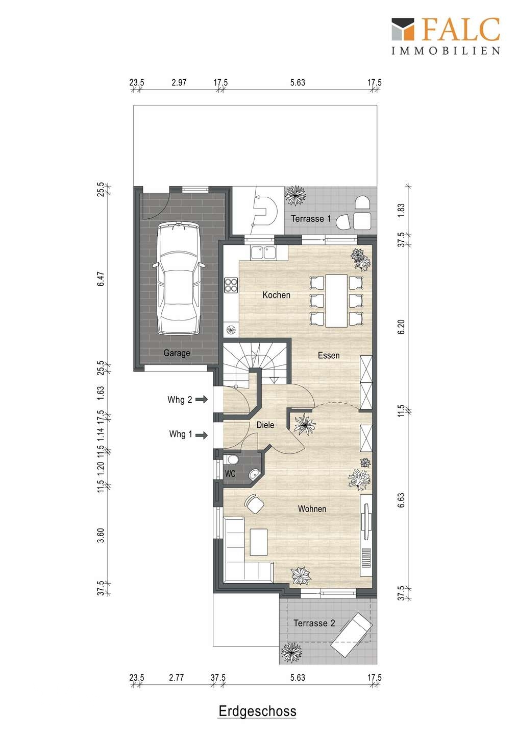 • 6 Zimmer • bis zu 5 Schlafzimmer • 2 Terrassen mit Gartenzugang • 1 Hauswirtschaftsraum • 1 Gäste-WC