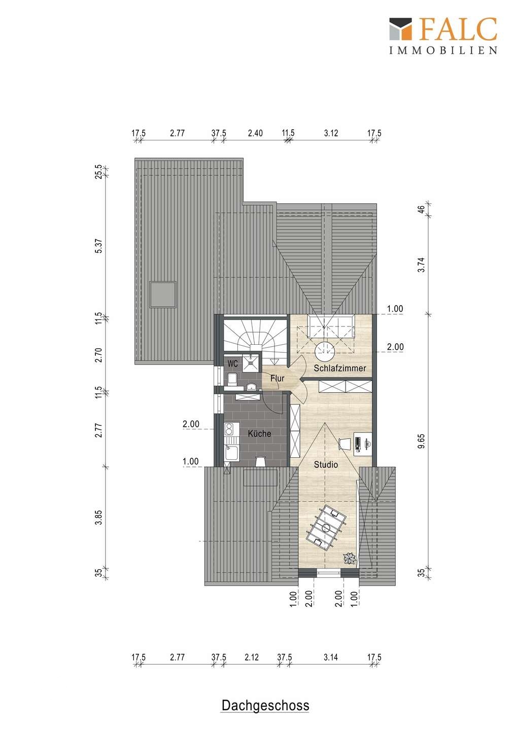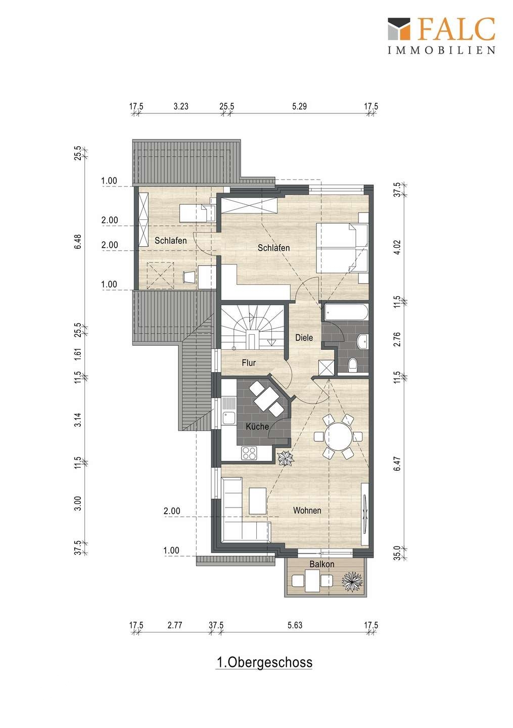 Das Ober- und Dachgeschoss sind aktuell vermietet und bieten zusammen fünf Zimmer, darunter bis zu vier Schlafzimmer. Zwei Küchen, zwei Badezimmer, ein zusätzliches Gäste-WC sowie ein Balkon und eine Garage sorgen für hohen Wohnkomfort.