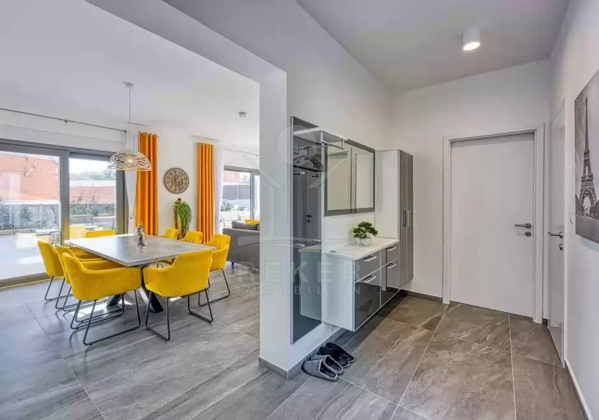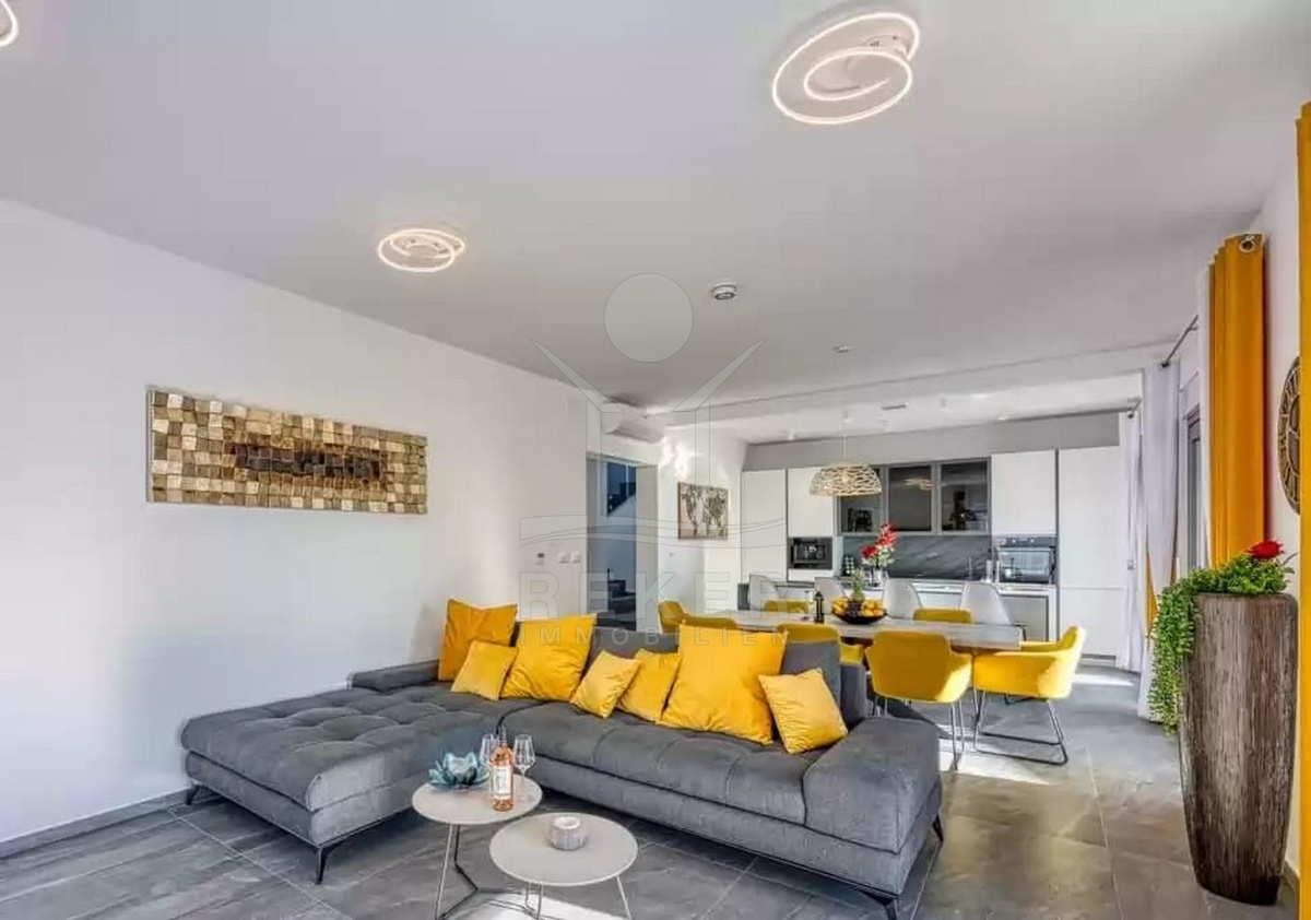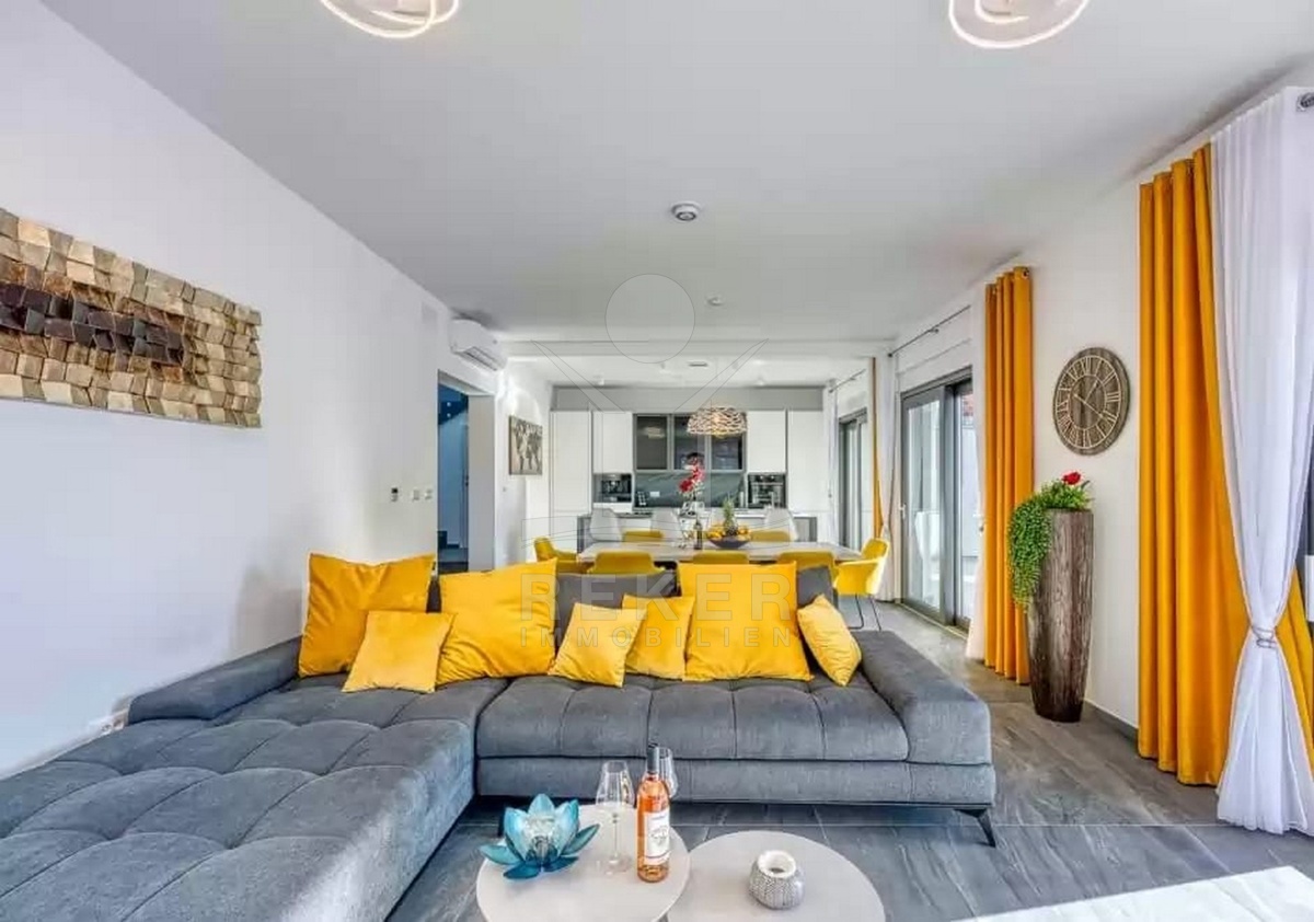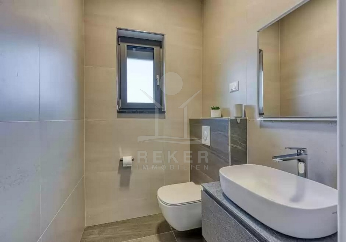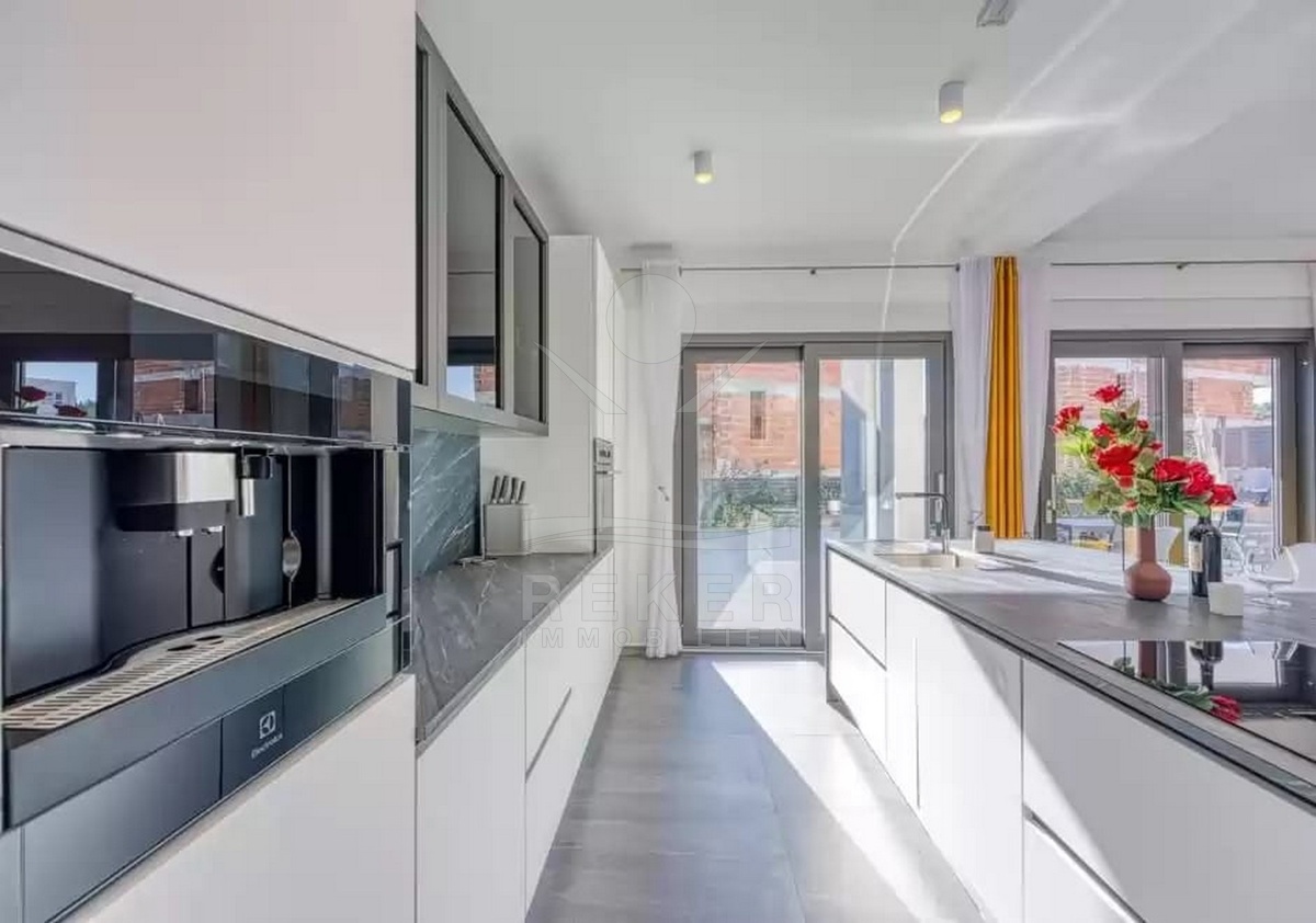 Stellen Sie sich vor: Ein Workout mit Blick auf Poreč, entspannen im Jacuzzi und den Sonnenuntergang auf 52 m² Dachterrasse genießen. Diese Doppelhaushälfte vereint moderne Architektur mit mediterranem Lebensgefühl.