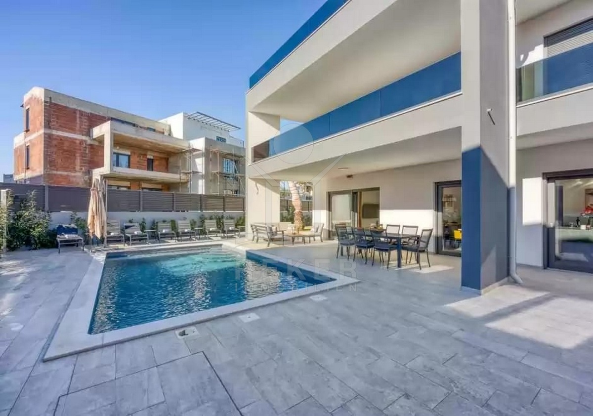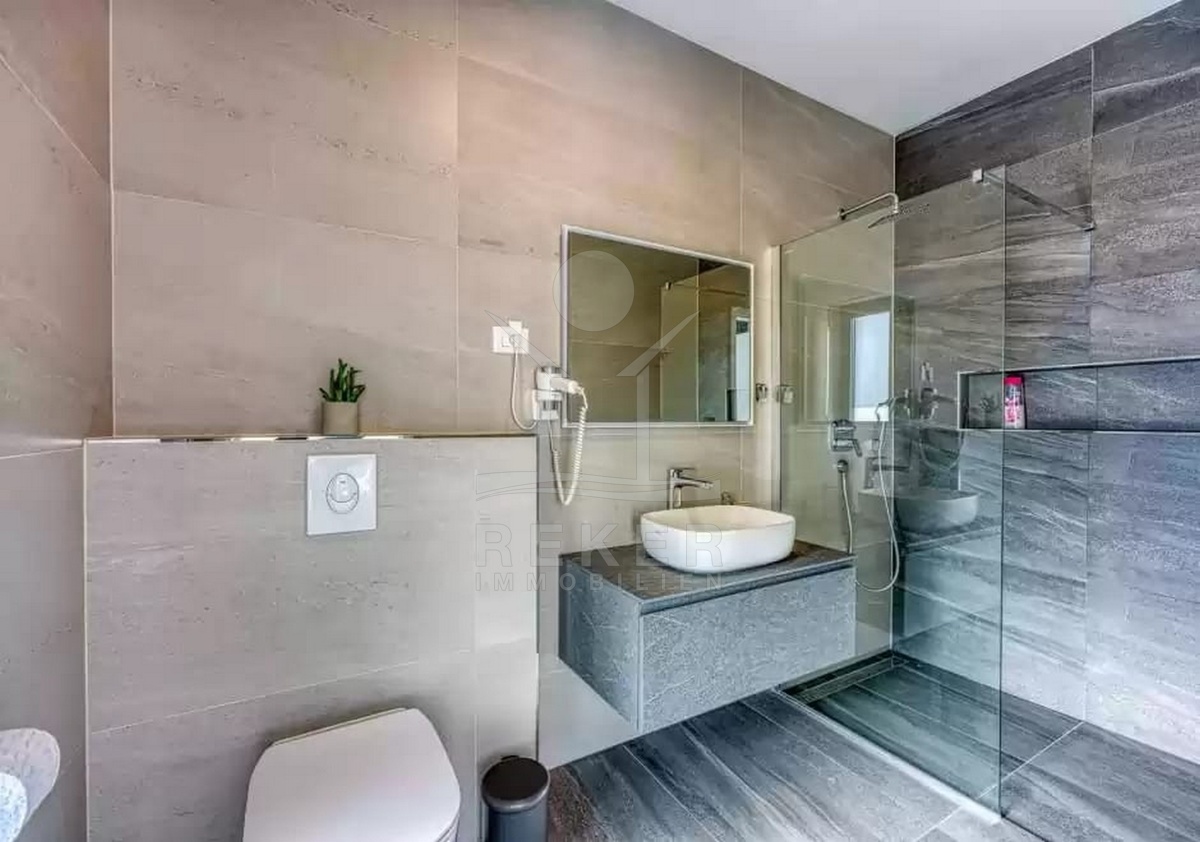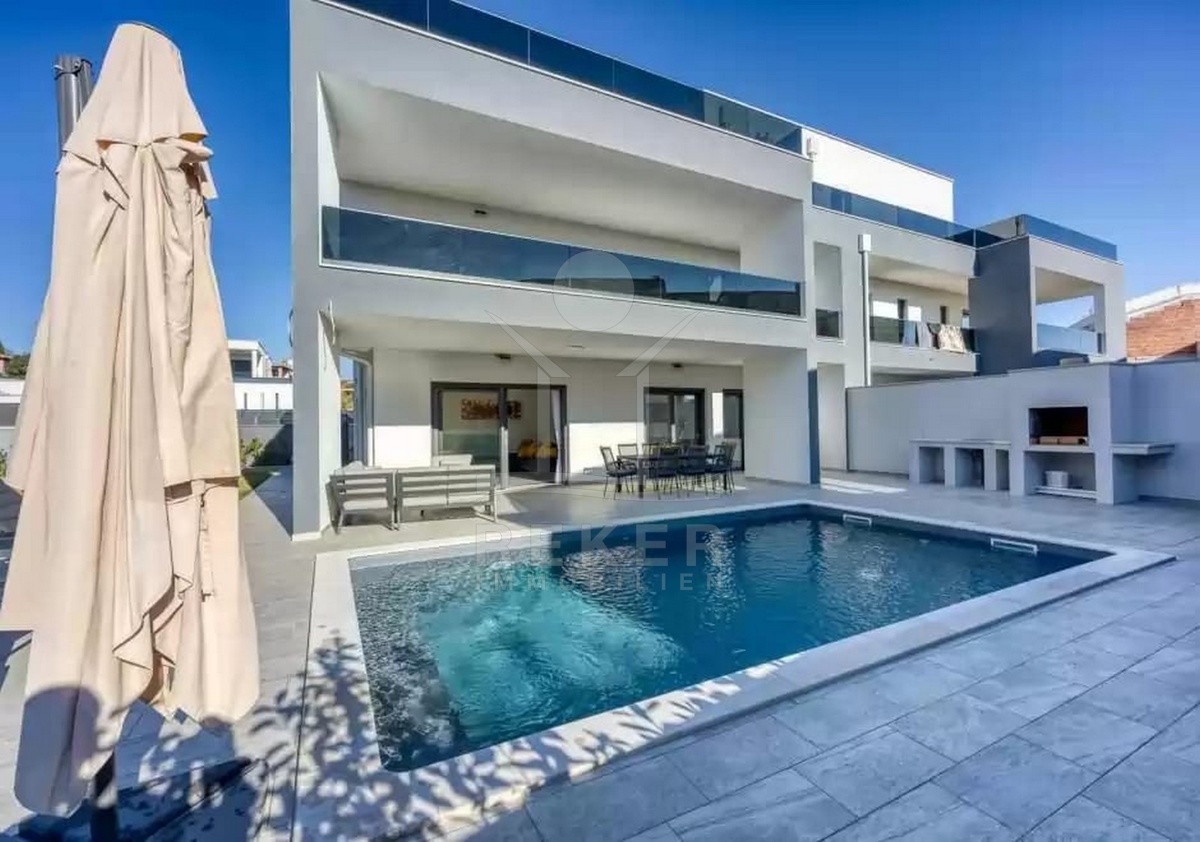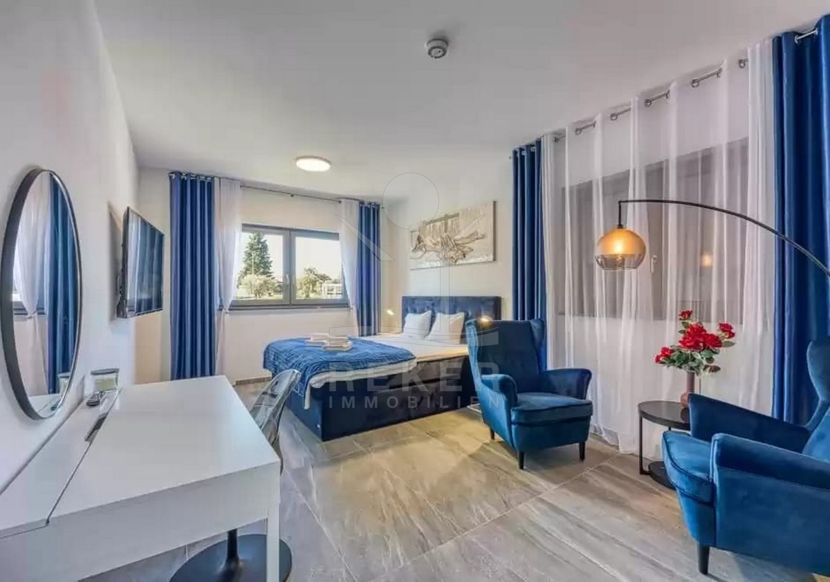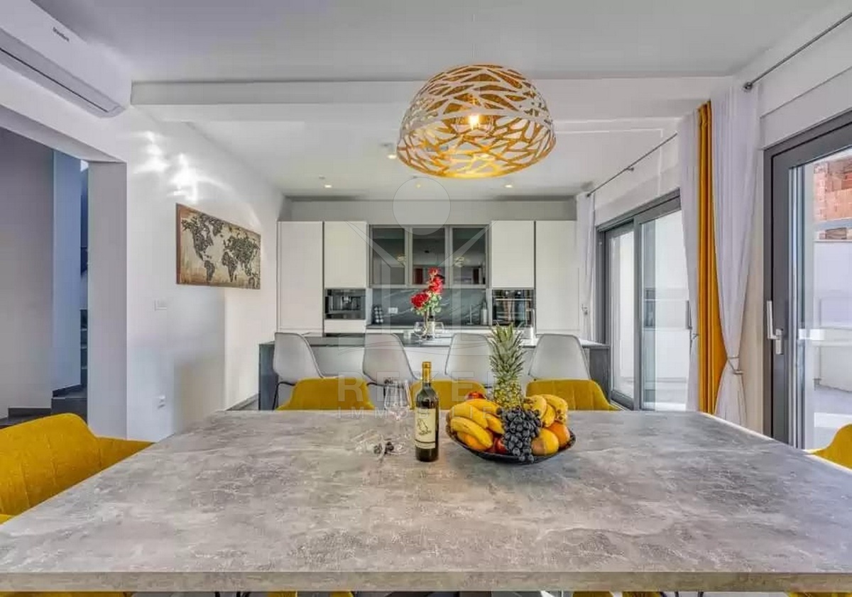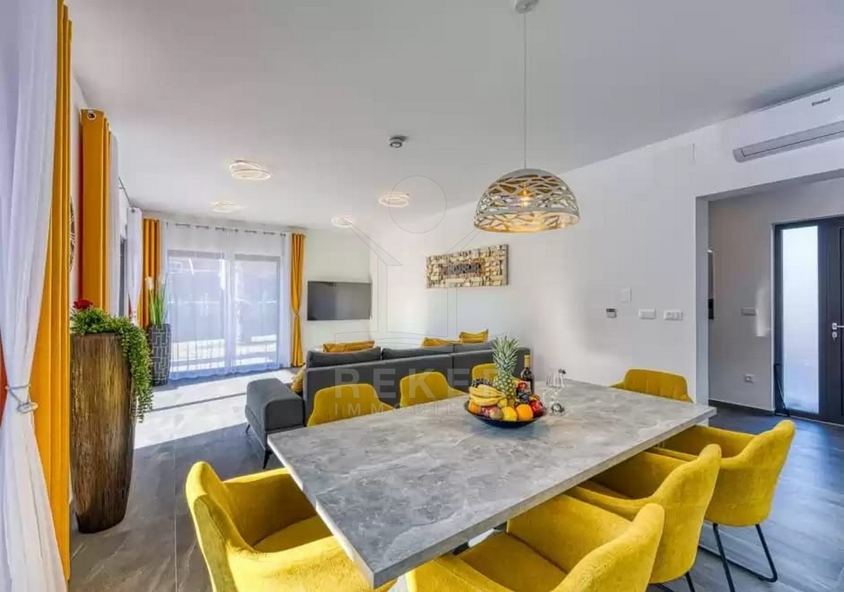 Stellen Sie sich vor: Ein Workout mit Blick auf Poreč, entspannen im Jacuzzi und den Sonnenuntergang auf 52 m² Dachterrasse genießen. Diese Doppelhaushälfte vereint moderne Architektur mit mediterranem Lebensgefühl.