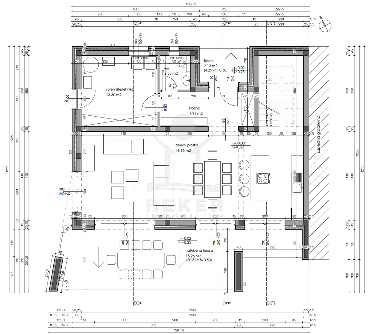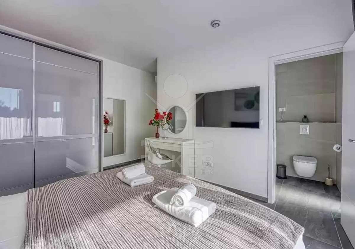 In einer ruhigen Siedlung unweit des Zentrums von Poreč wartet ein modernes Doppelhaus aus dem Jahr 2023. Das Meer erreichen Sie nach 800 m, der Strand ist nur etwa 1.300 m entfernt. Einkaufsmöglichkeiten und die Altstadt liegen 500 m vor der Haustür. Das Grundstück misst 481 m² und bietet eine gepflegte Außenanlage mit viel Privatsphäre. Der Wohnbereich öffnet sich direkt zur 30,52 m² großen Terrasse … ein Platz für lange Abende im Freien. Der Garten und ein schöner Pool, ausgestattet mit einer vorbereiteten Heizungsanlage, runden das Ganze ab.