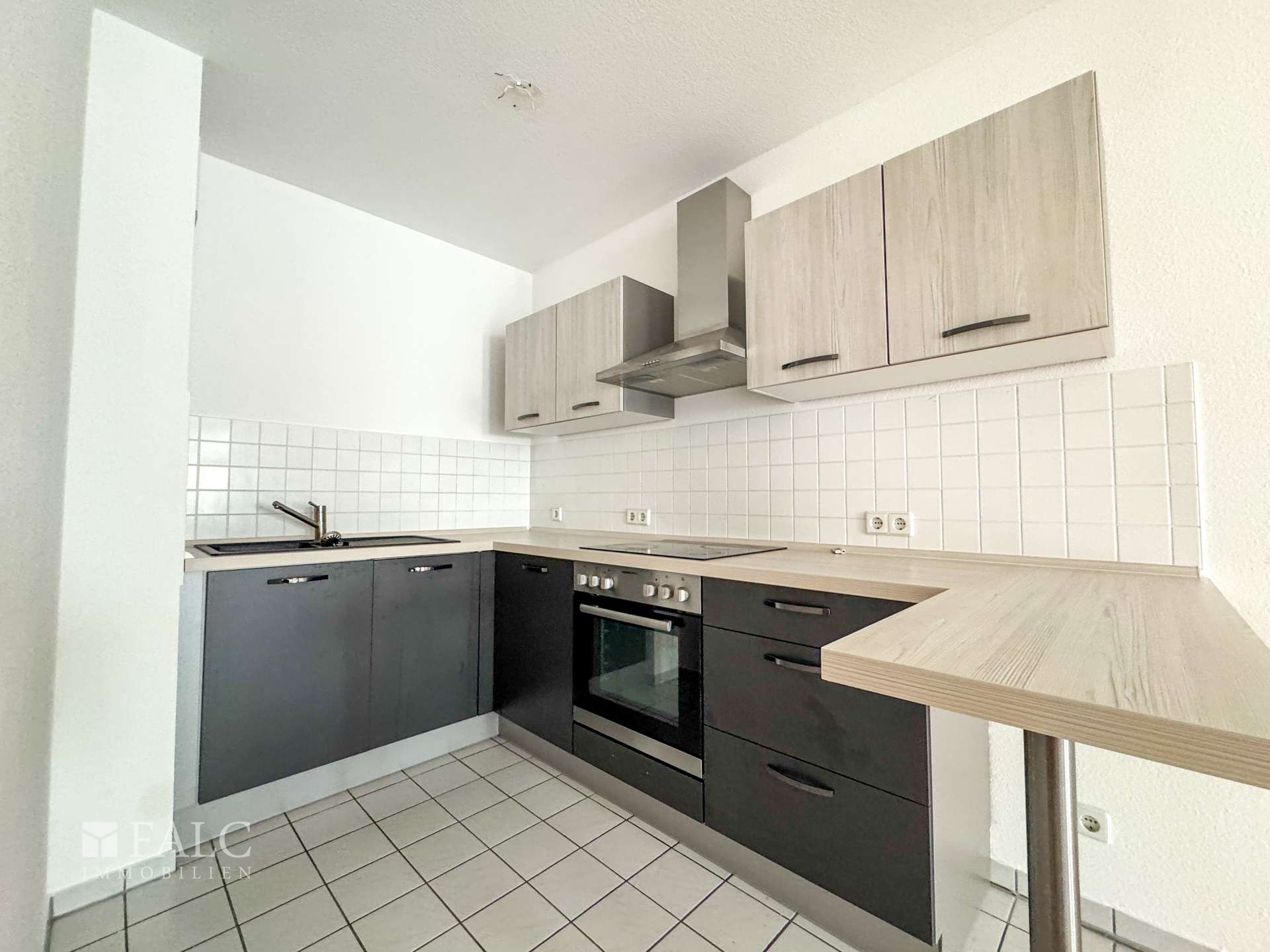 Rechts vom Flur liegt die moderne Küche, die mit funktionalen Einbauten und ausreichend Arbeitsfläche ausgestattet ist. Sie bietet alles, was man für die Zubereitung köstlicher Mahlzeiten benötigt.Die auf den Bildern gezeigte Küche, ist nicht teil der Wohnung, Sie kann aber gegen einen Aufpreis übernommen werden. Angrenzend befindet sich das Schlafzimmer, das ebenfalls durch seine großzügigen Fenster besticht und ausreichend Platz für ein Doppelbett und einen Kleiderschrank bietet.