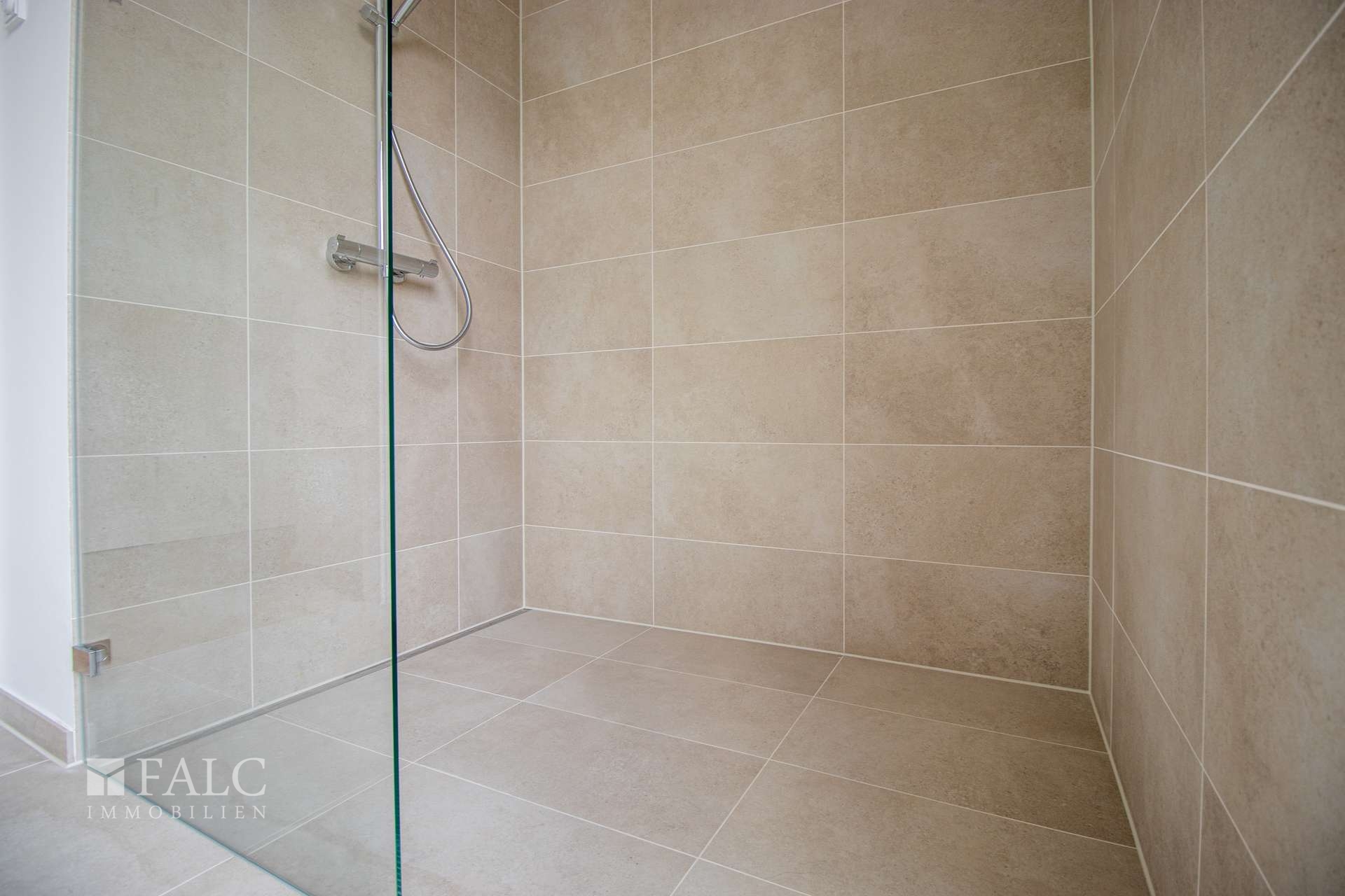 Die Sanitärausstattung besteht aus zeitlosen Armaturen von namhaften Herstellern. Das große Tageslichtfenster und die ebenerdige Regendusche werden Sie begeistern.