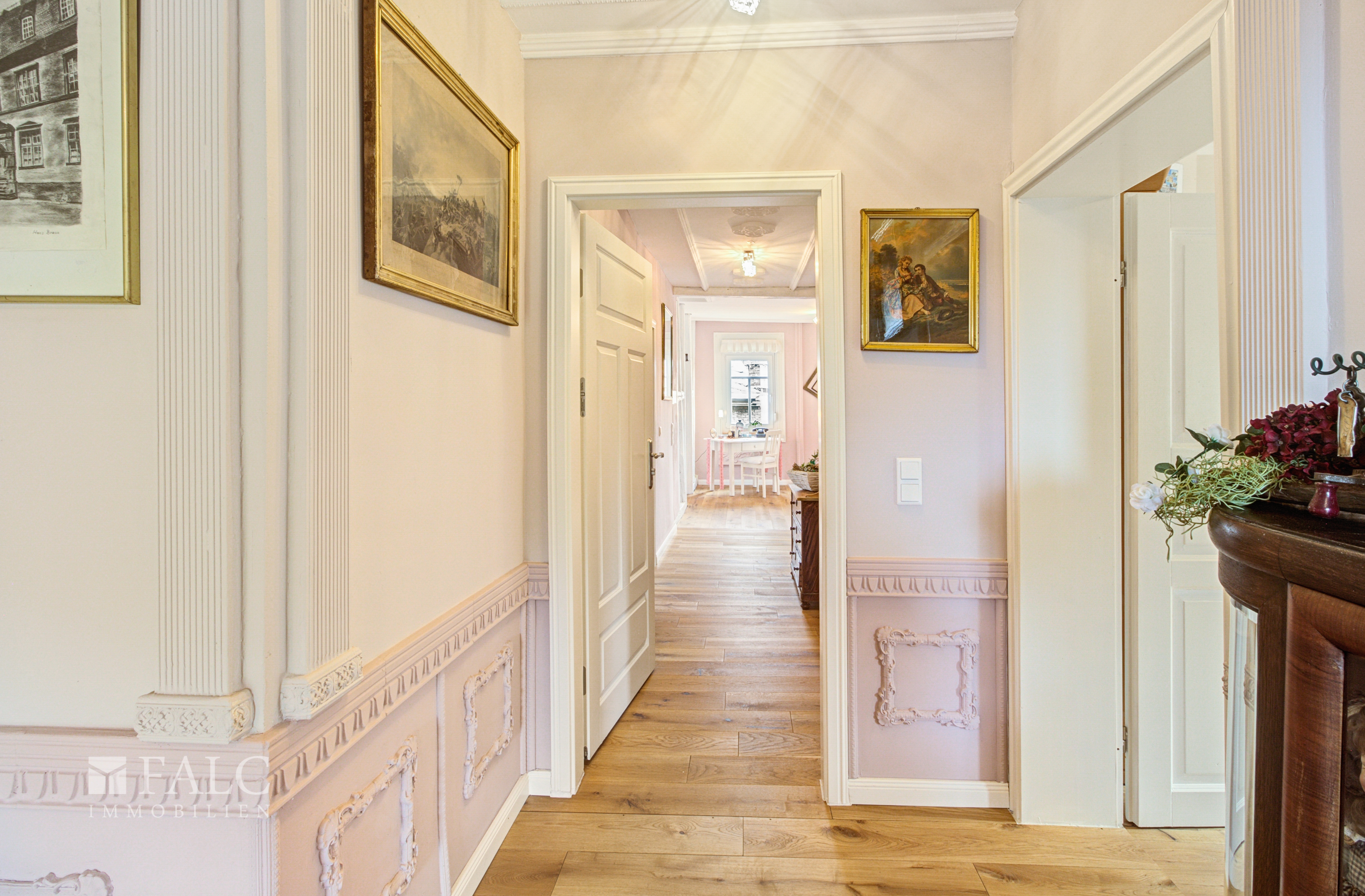 Bereits beim Betreten des kernsanierten, liebevoll eingerichteten Mehrfamilienhauses aus dem 17. Jahrhundert werden Sie von einem einladenden Flur empfangen, der mit echtem Stuck, welcher im gesamten Anwesen zu finden ist, beeindruckt. Die 362 m² Wohnfläche erstrecken sich über vier abgeschlossene Wohnungen, die mit ihrer charaktervollen Gestaltung und hochwertiger Ausstattung überzeugen.