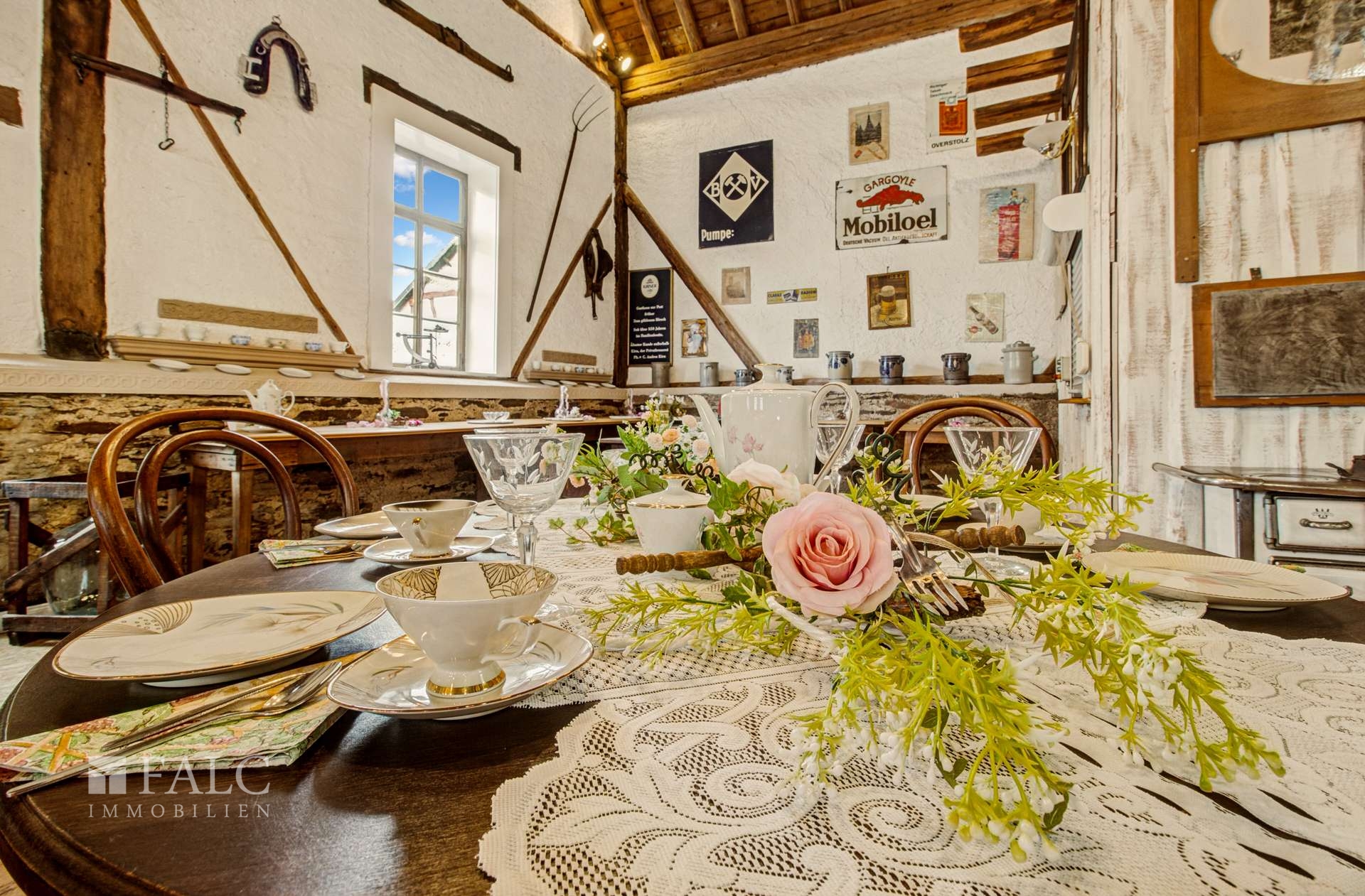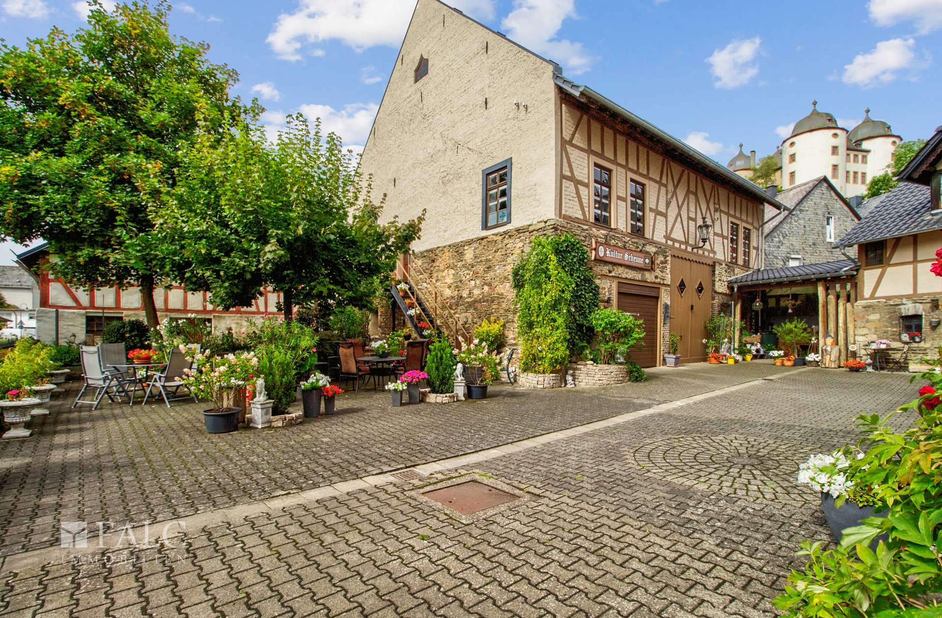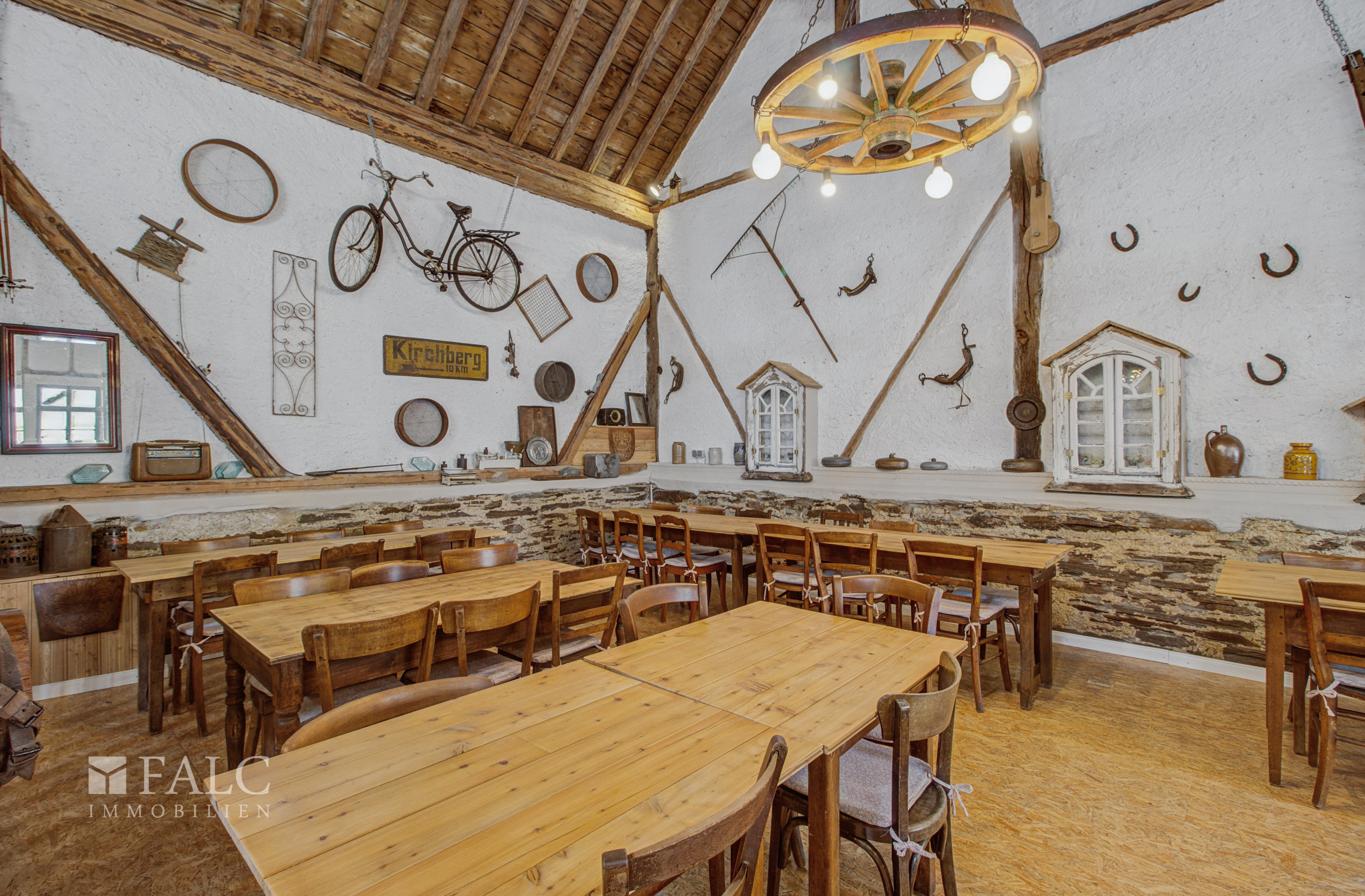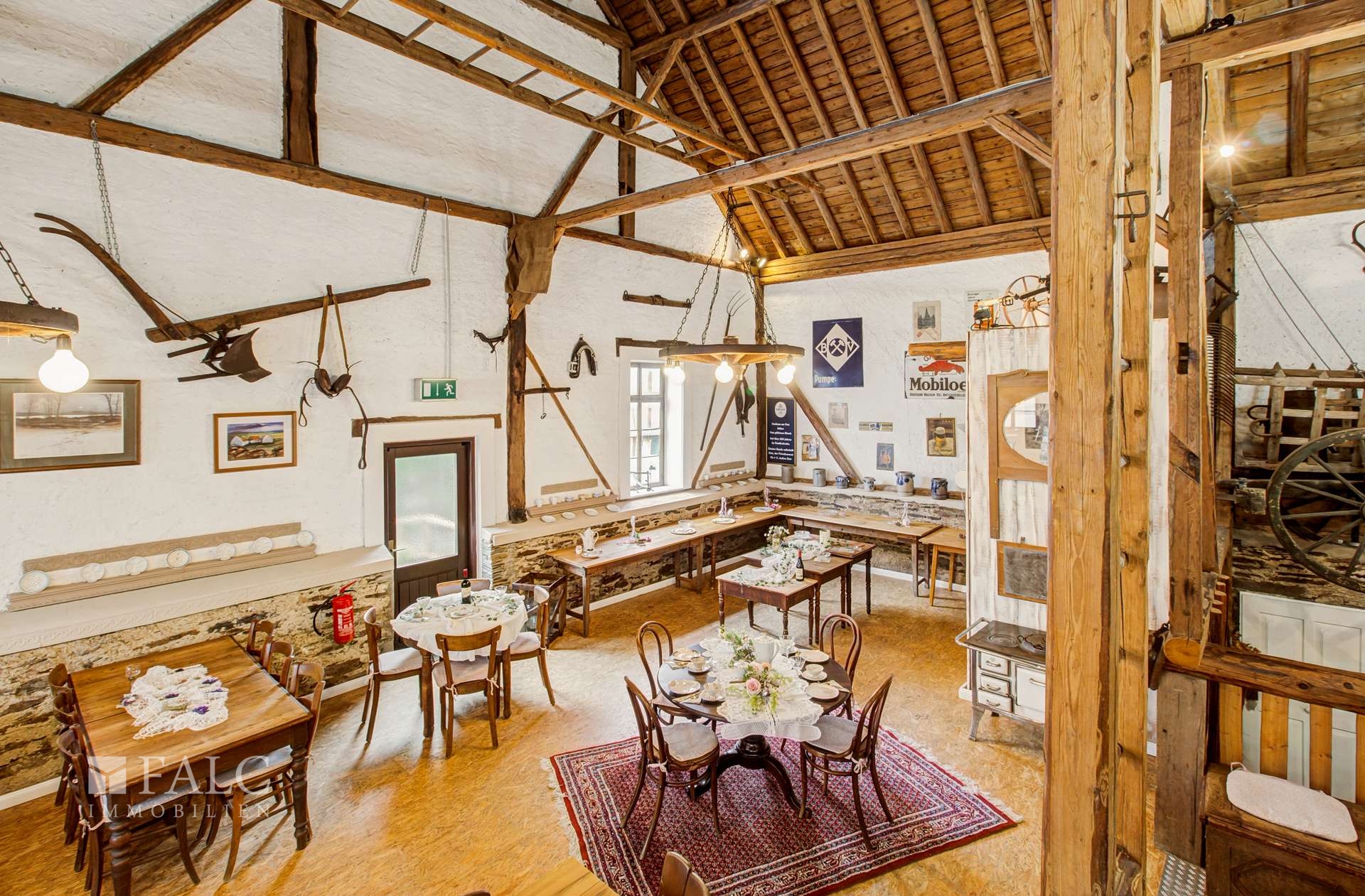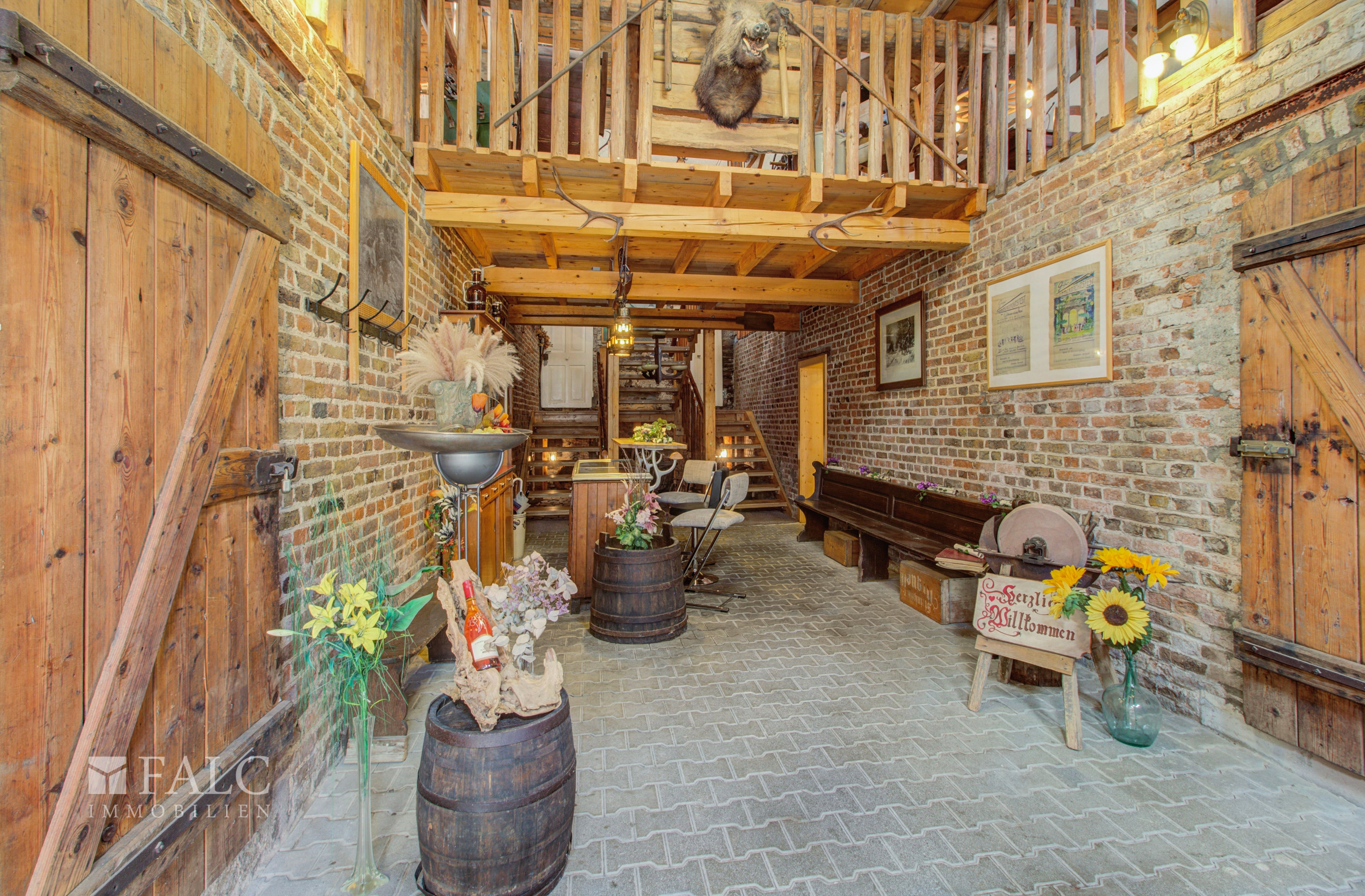 Der Außenbereich mit einem kleinen Garten und einer Möglichkeit für Außenbestuhlung führt Sie direkt zu der stilvoll eingerichteten Eventscheune – einem wahren Highlight dieses Anwesens. Ob für private Veranstaltungen oder als Vermietungsobjekt, dieses außergewöhnliche Gebäude bietet zahlreiche Gestaltungsmöglichkeiten und wird sicherlich die Herzen von Event- und Festliebhabern höherschlagen lassen.